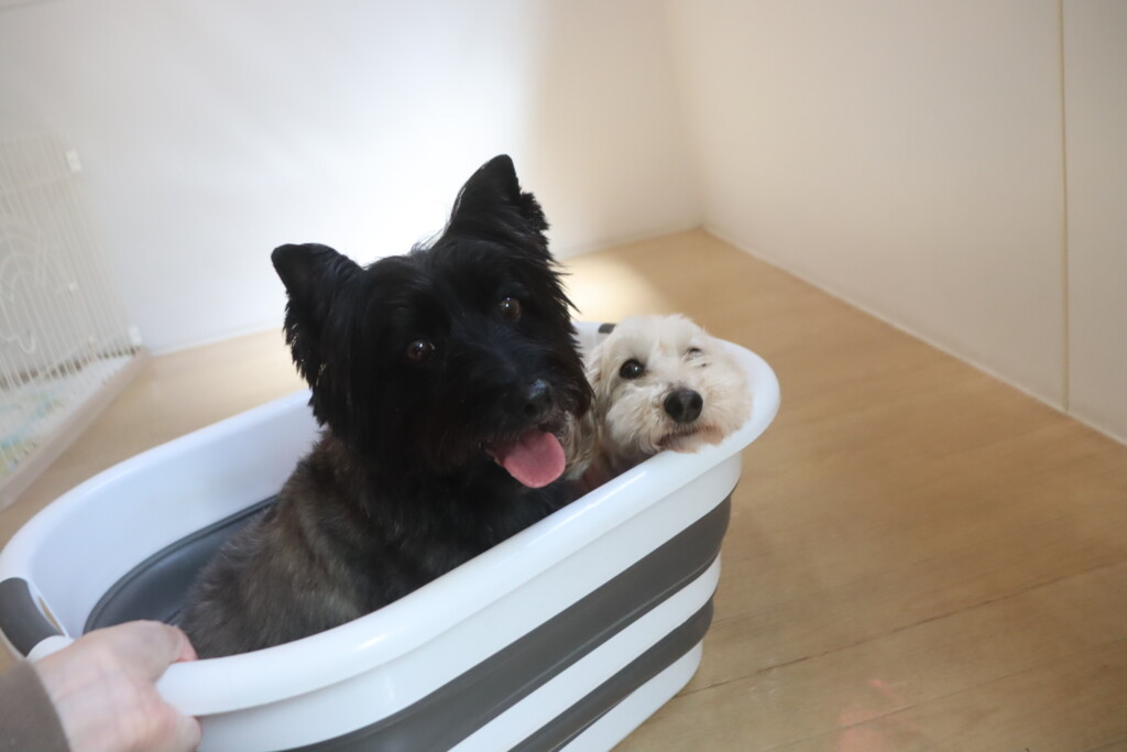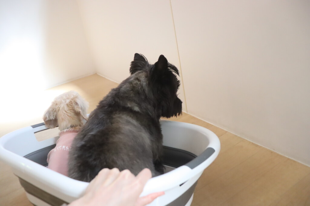ノンちゃんとのバスタブ慣れではされるがままの2頭でした(笑)