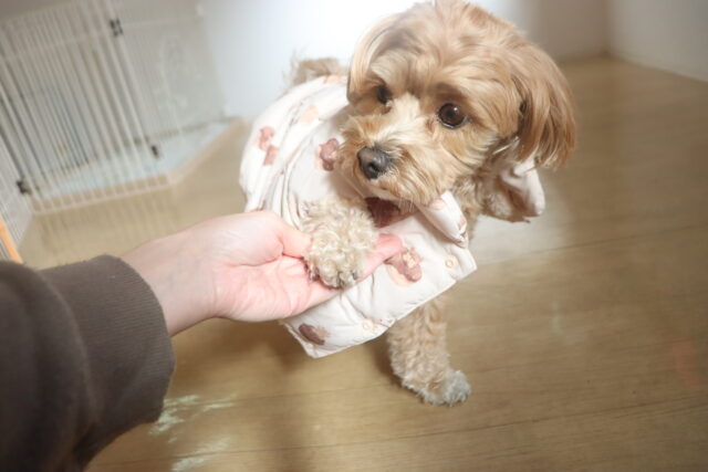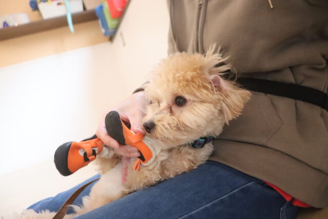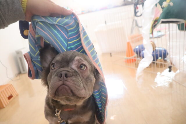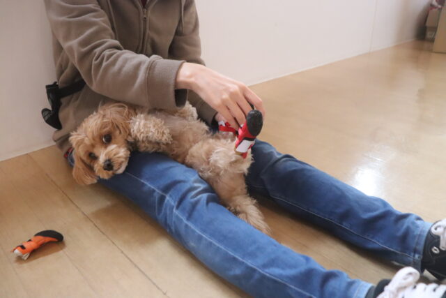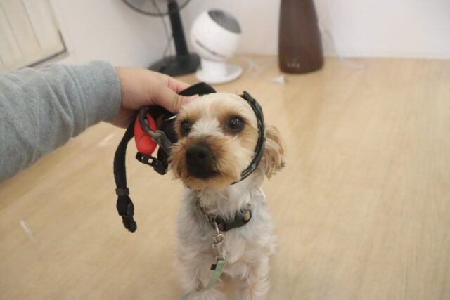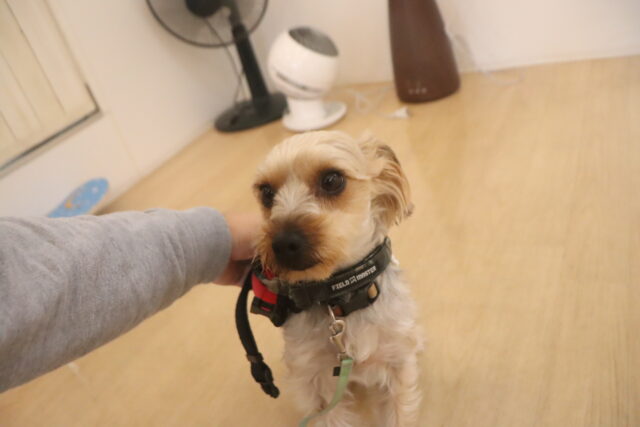 苦手を減らせるよう体を触られる練習や、ハーネスの着脱練習も行っています!
