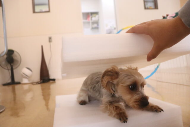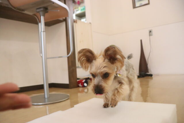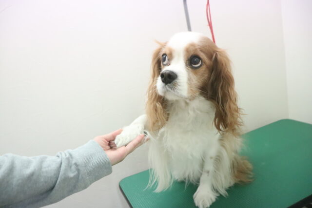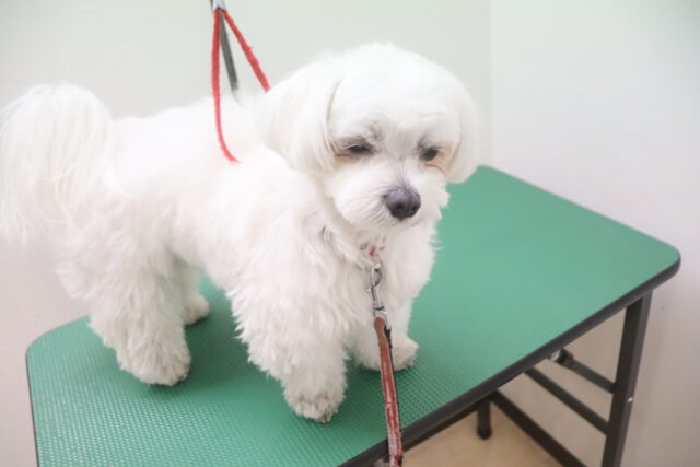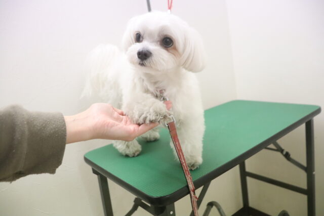 茶々丸くんはトリミング台でお手入れ練習もしたね!