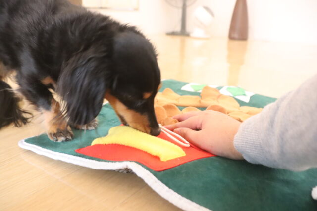 ここみちゃんは新しいノーズワークマットに挑戦!!