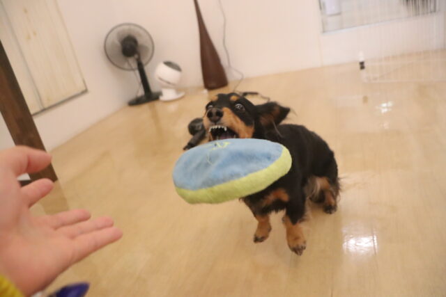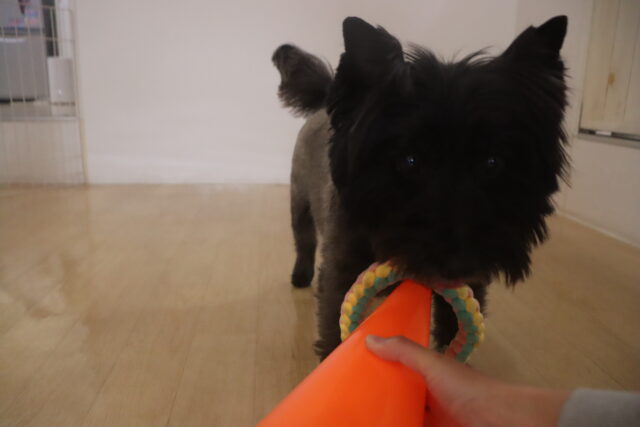 今日はロープで引いてみると「動いてる⁉⁉」と目を見開いてビックリ!Σ(゚Д゚)