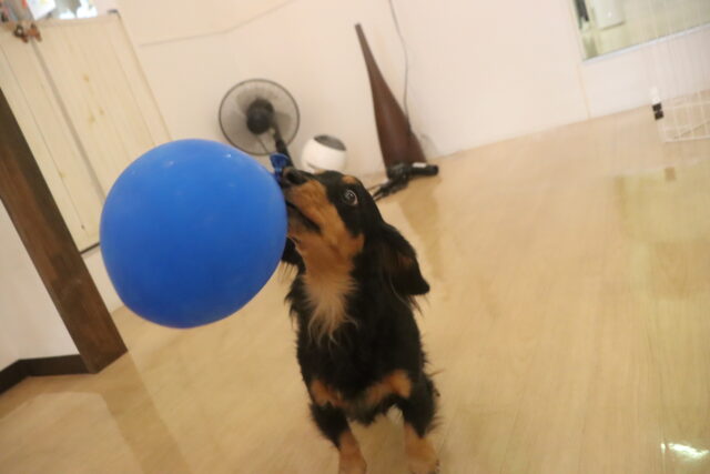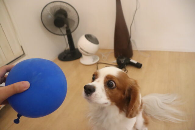 アンディくんは風船慣れもしたね!ちょっと苦手な風船を前にこの表情(笑)