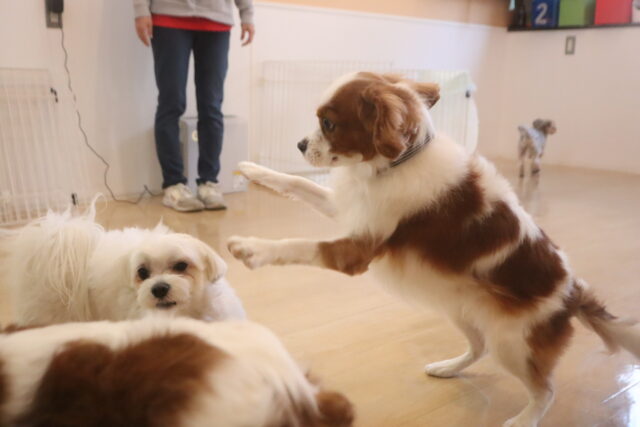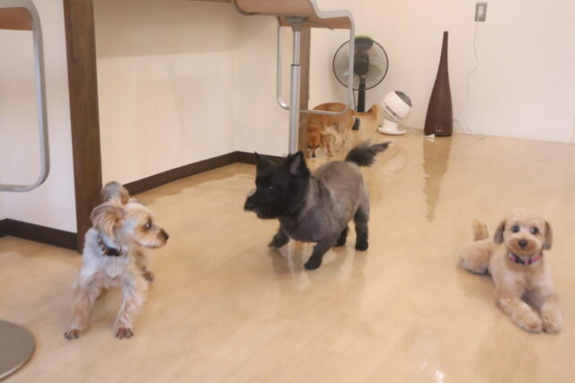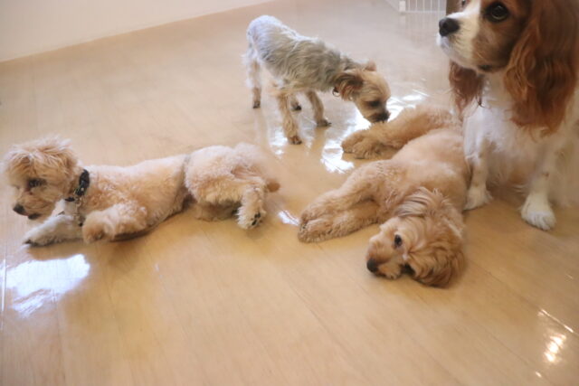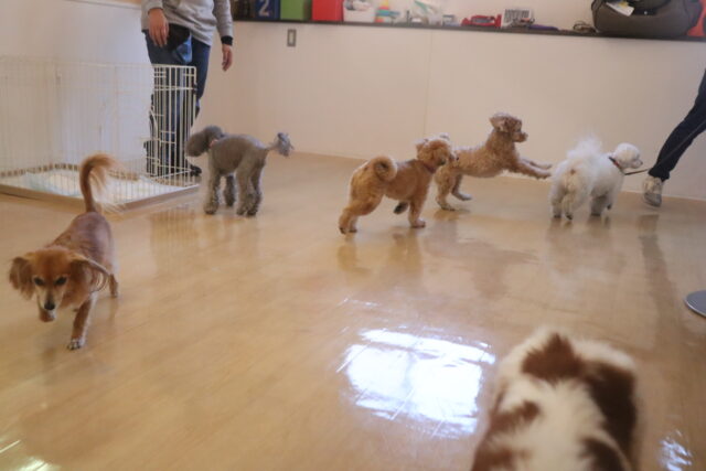 今日の保育園生は、マルチーズ×トイプードルのアンディくん・アリアちゃん、カニンヘンダックスフンドのここみちゃん、キャバリアキングチャールズスパニエルの茶々丸くん、ケアーンテリアのノンちゃん、トイプードルのアンジュちゃん、マルチーズのことぶきくん、ヨークシャーテリアのノアくん、チワワ×ミニチュアダックスフンドのらいくん、フレンチブルドッグのハイちゃん、ポメラニアン×トイプードルのエマちゃんです!