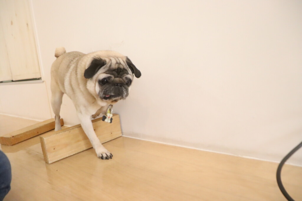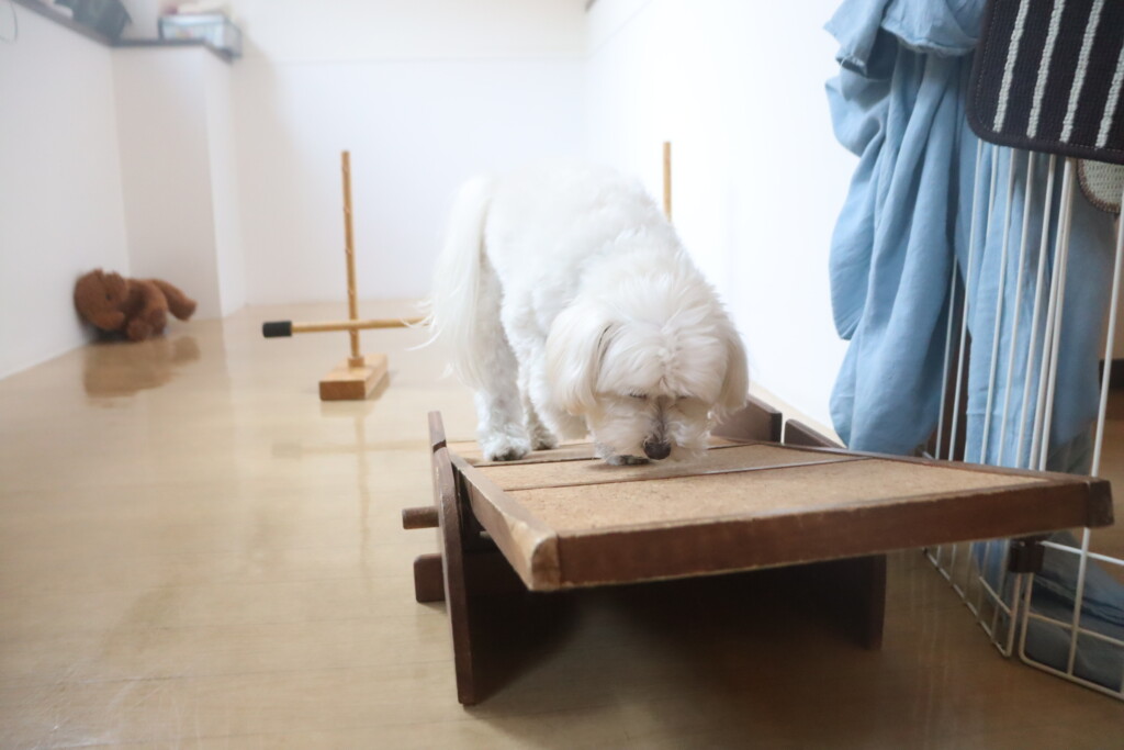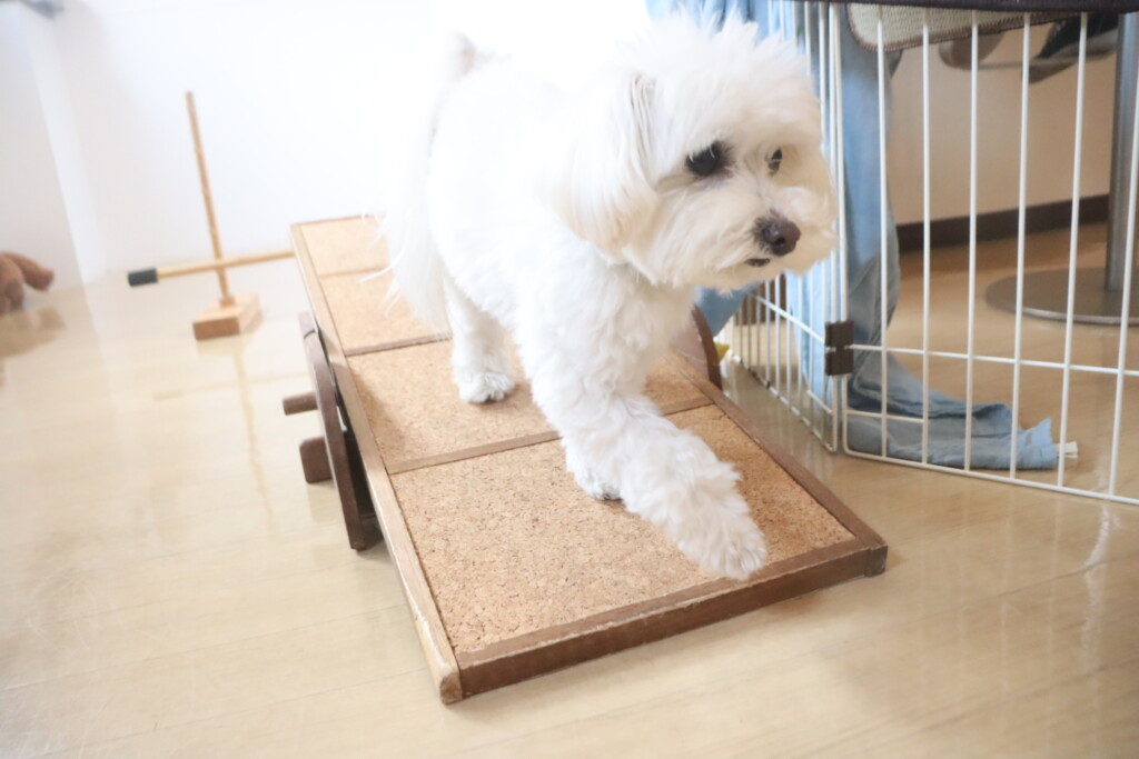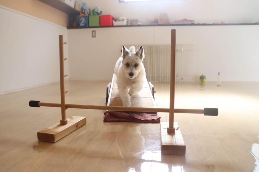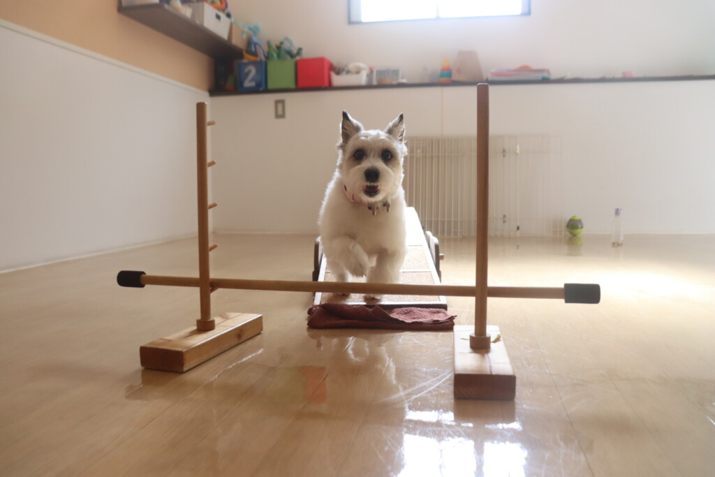 陽向くんはエリザベスカラーにだいぶ慣れてきたので、着用したままアスレチックに挑戦!