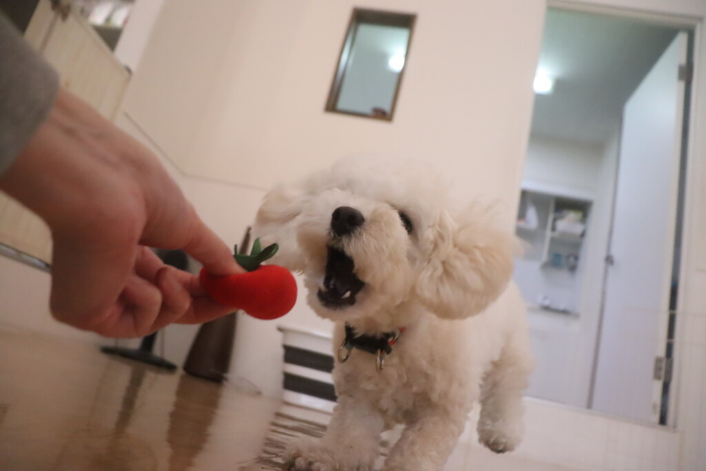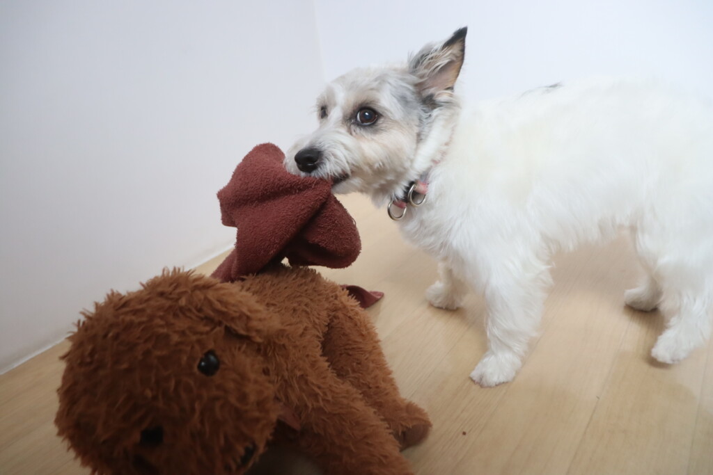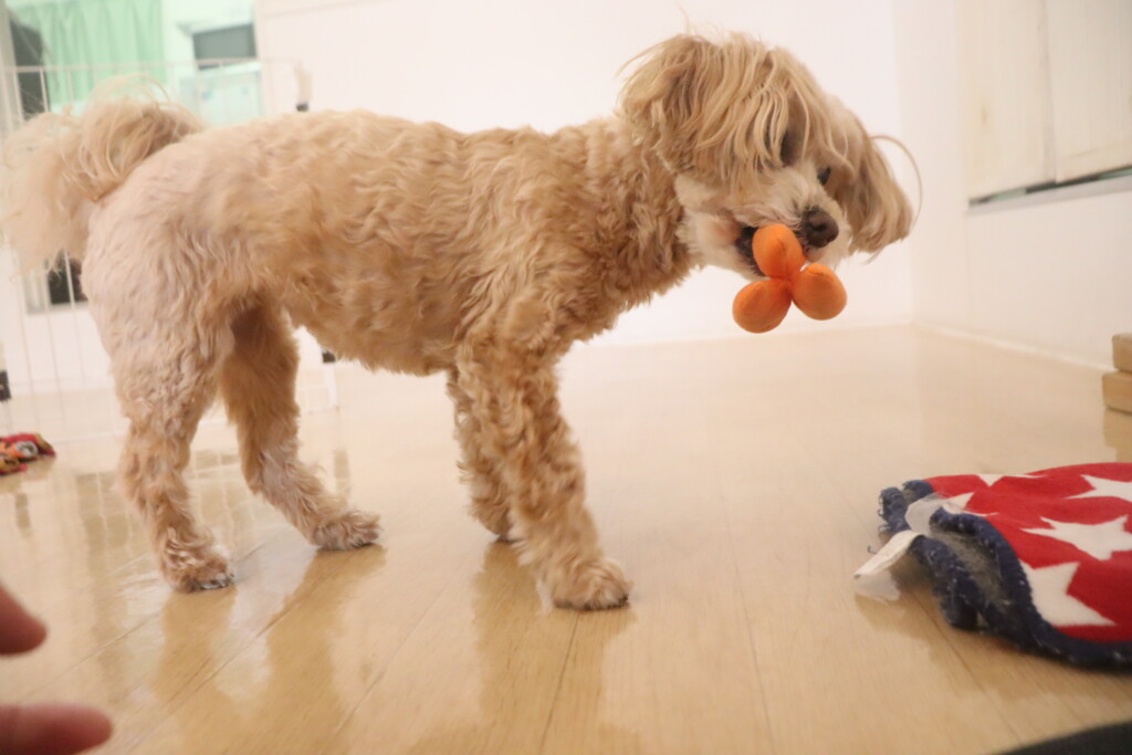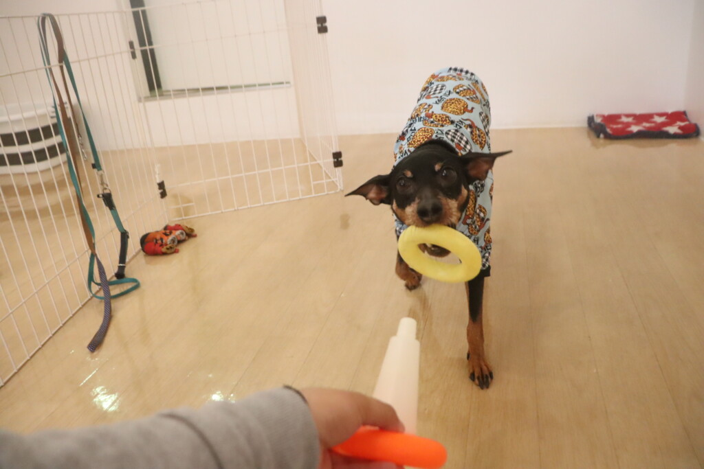 途中で「マテ」と声掛けすると、ピタッと遊ぶのをやめるハイちゃん👏