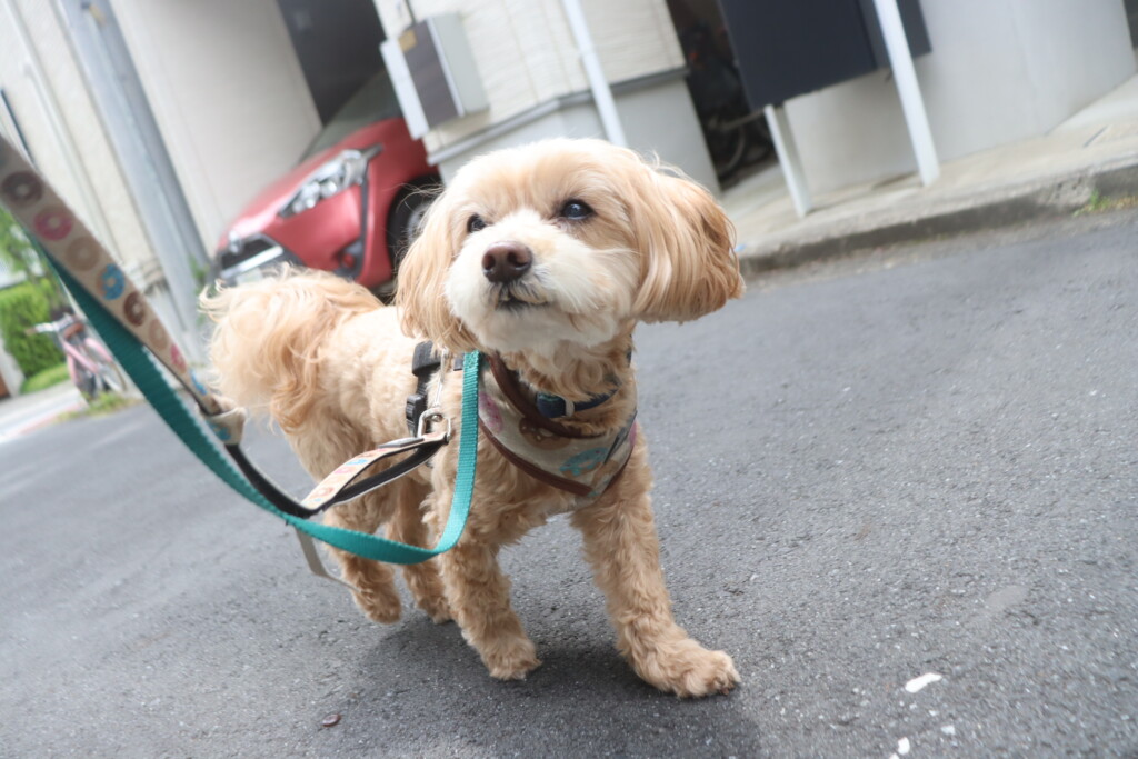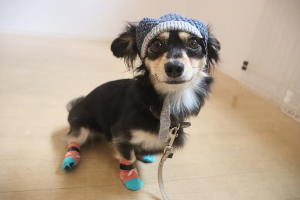 ゆずちゃんは靴を履いてお散歩にも行きました!