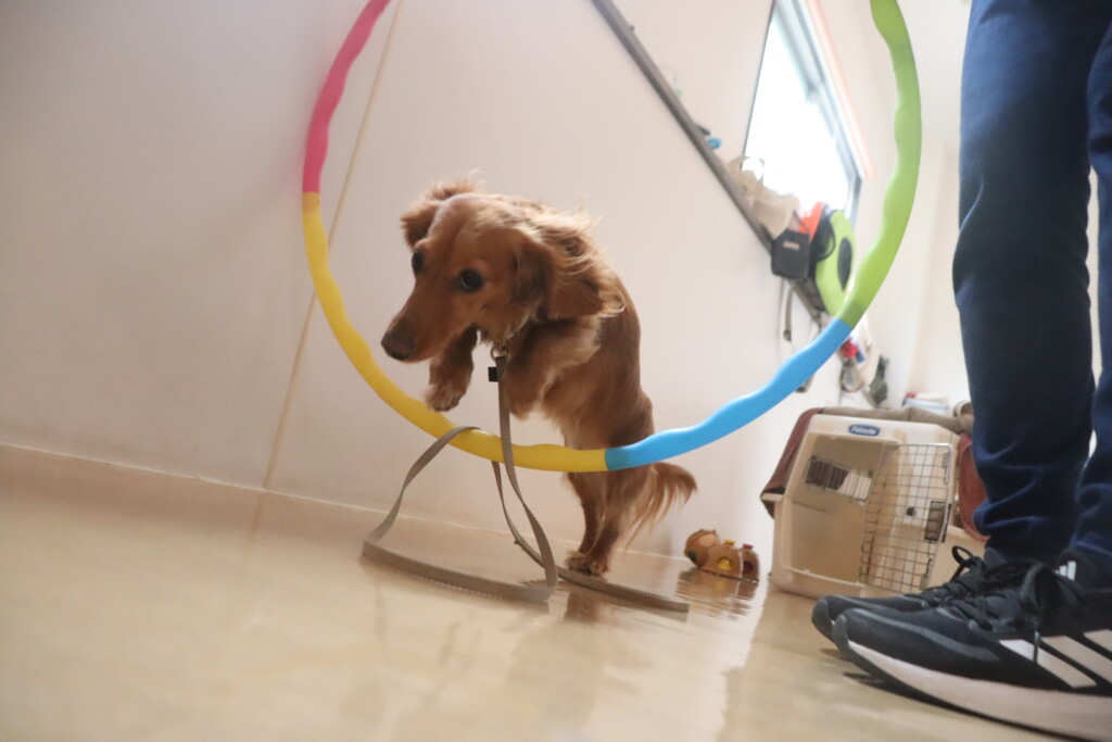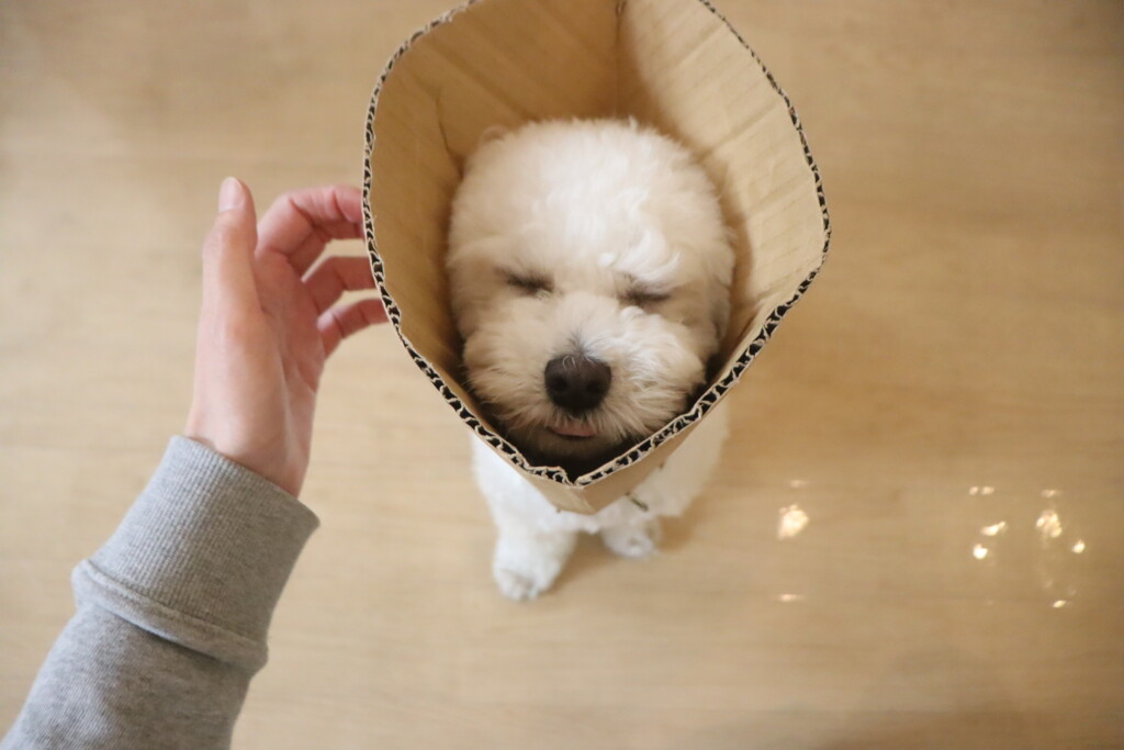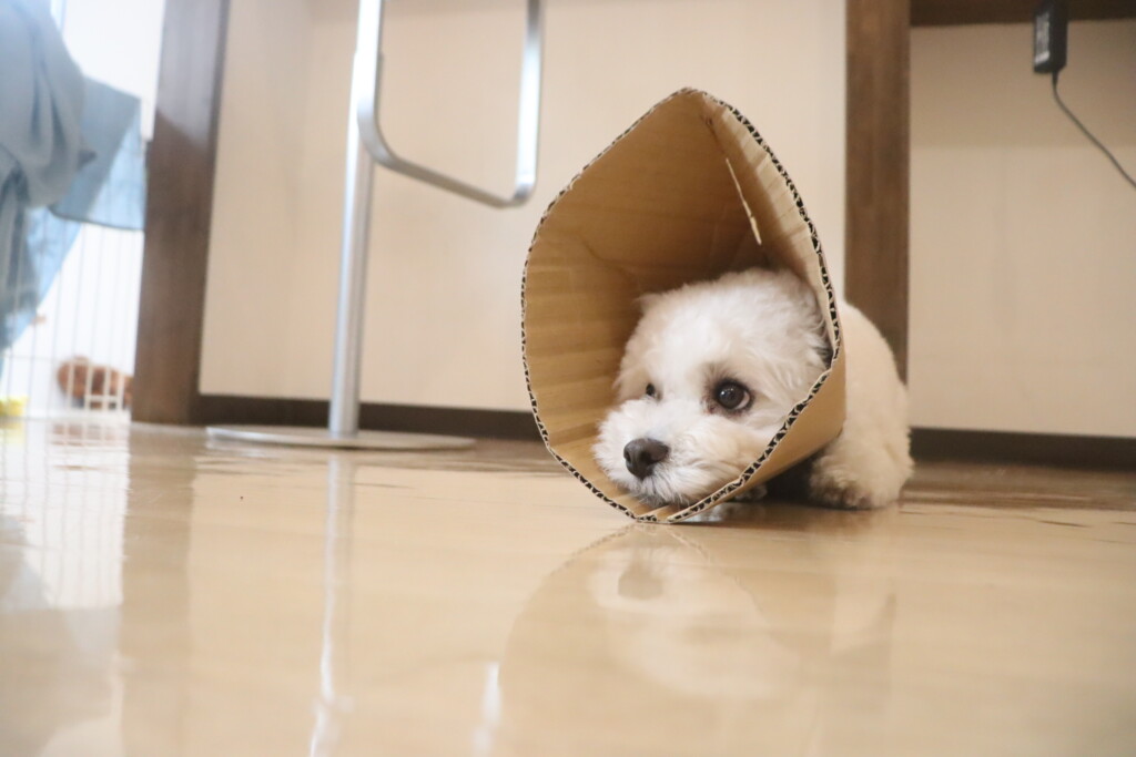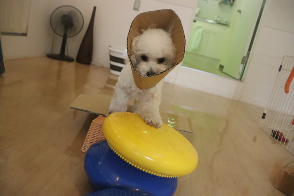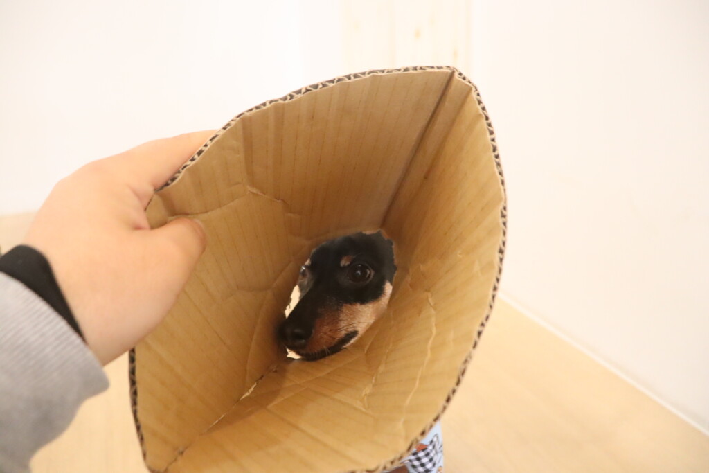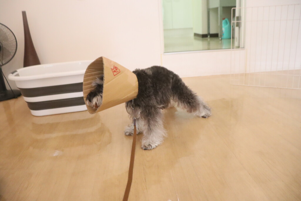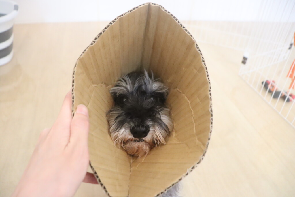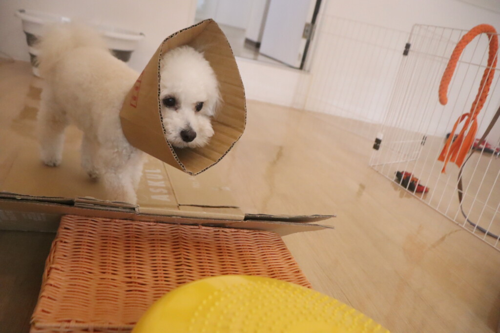 ルアくん・クオンくん・陽向くんはスタッフお手製のエリザベスカラーで物慣れをしました!
