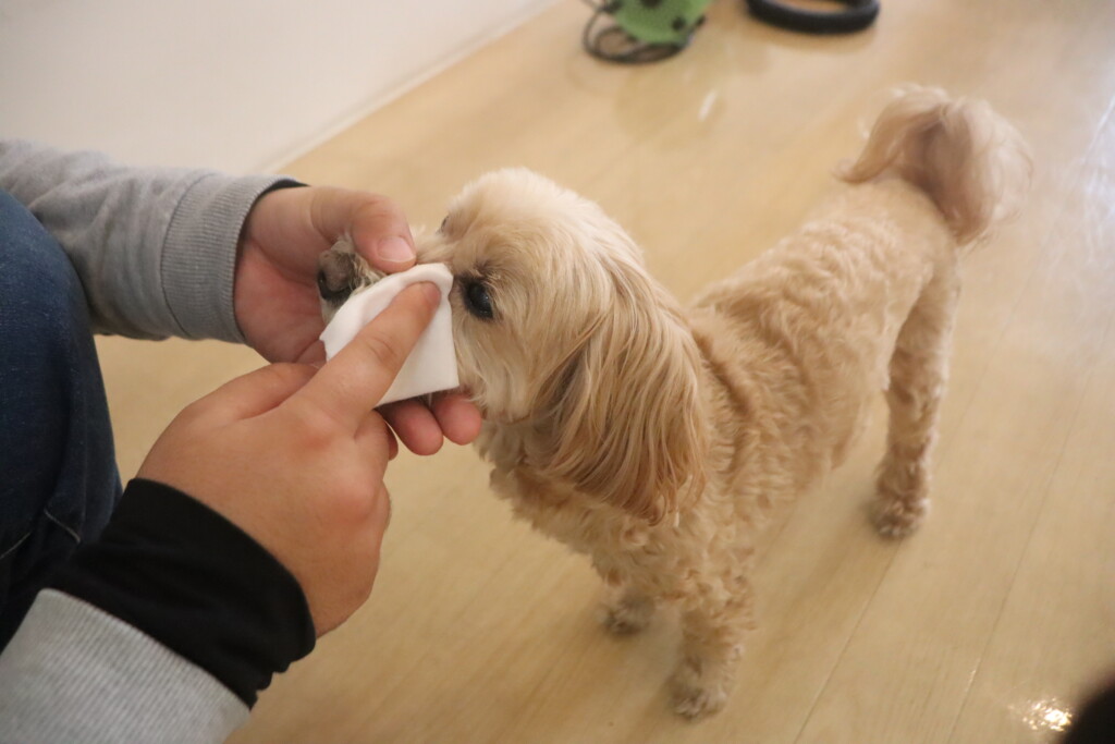 ”目ヤニ拭き”はとても落ち着いておりお利口さんです♬