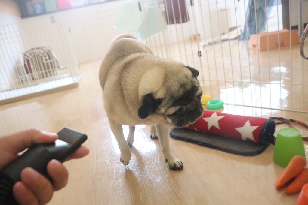 少し離れた位置からでも、スタッフの「ハウス」の声掛けでスムーズにクレートへ👏