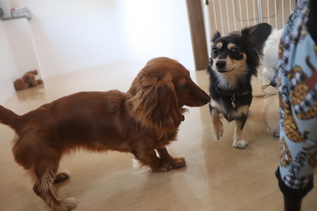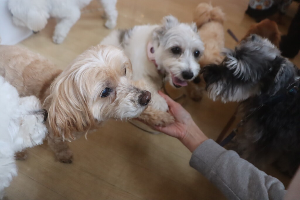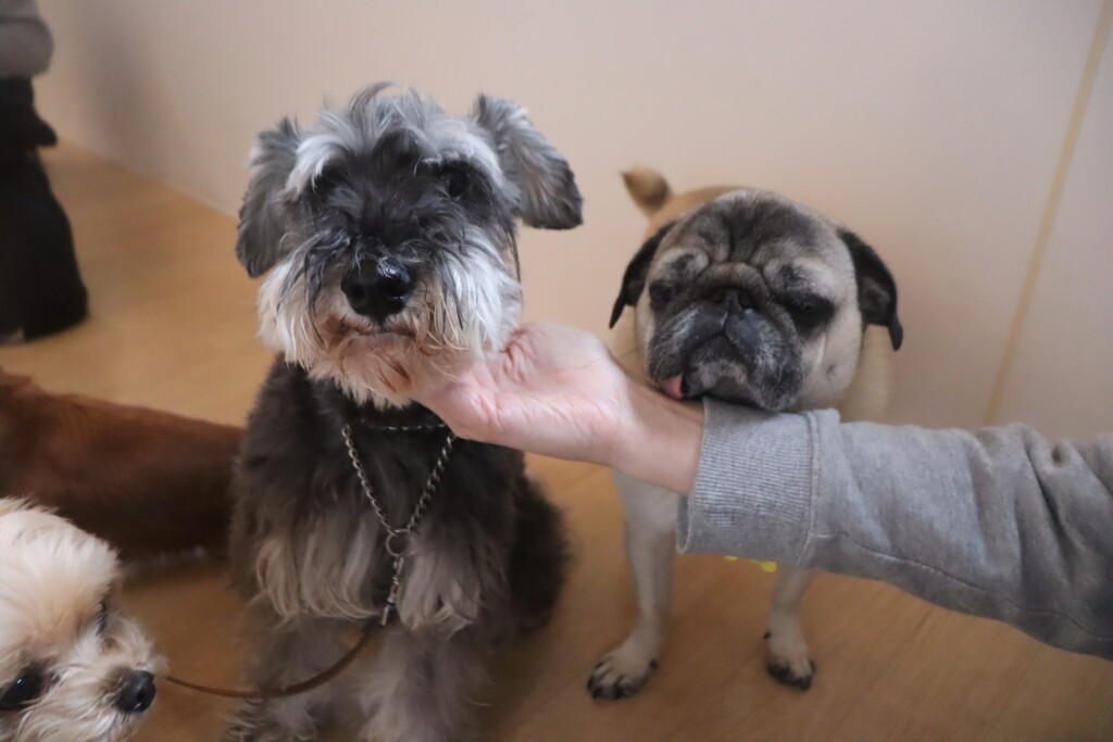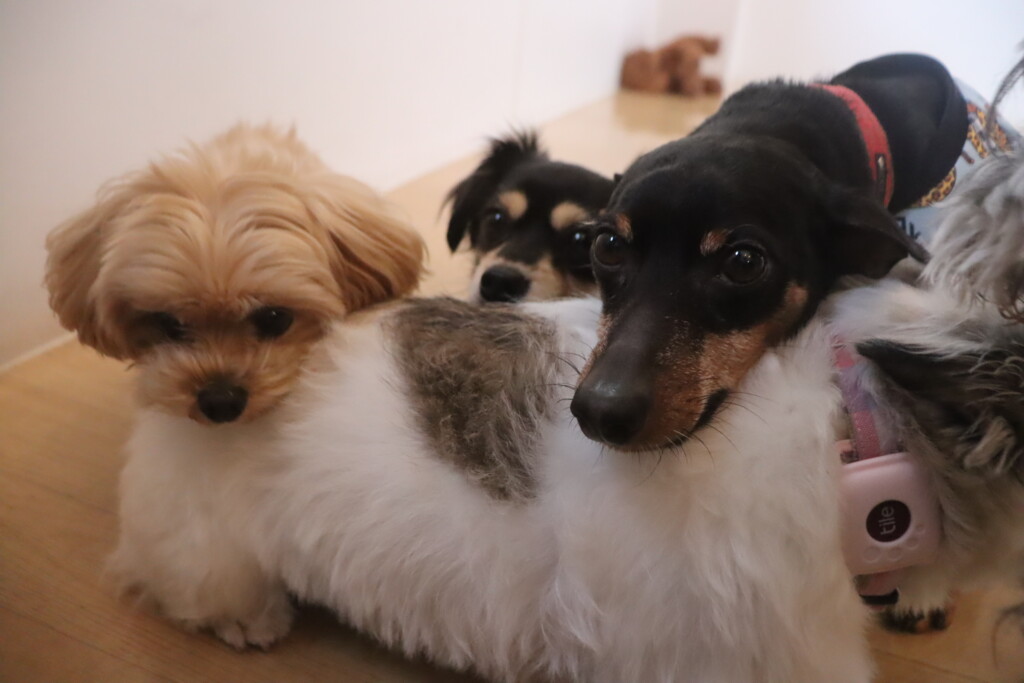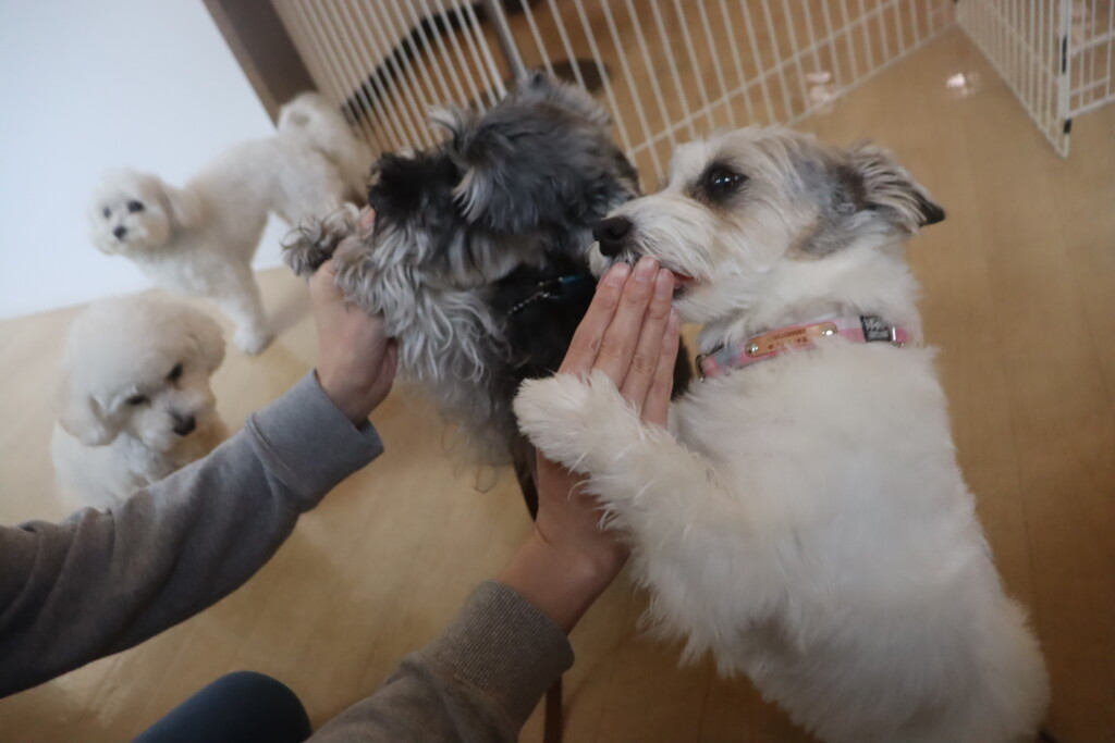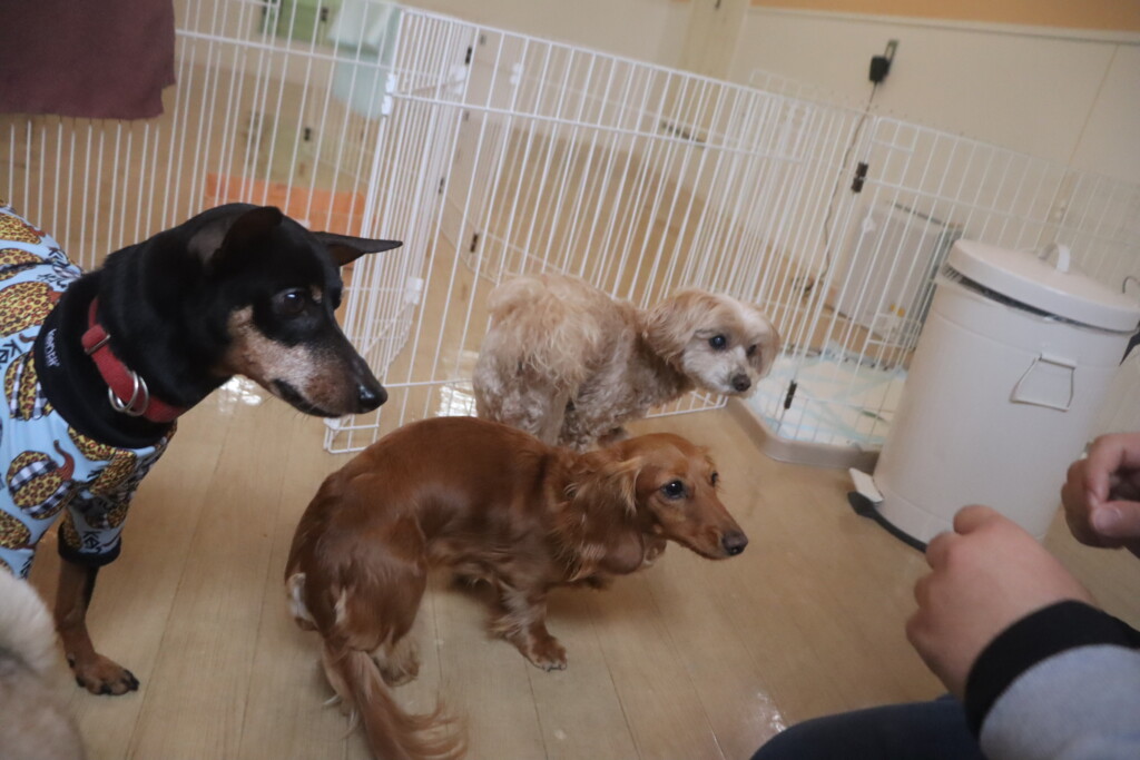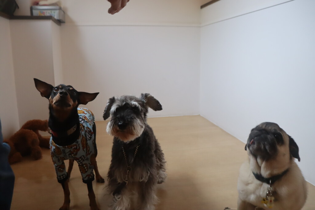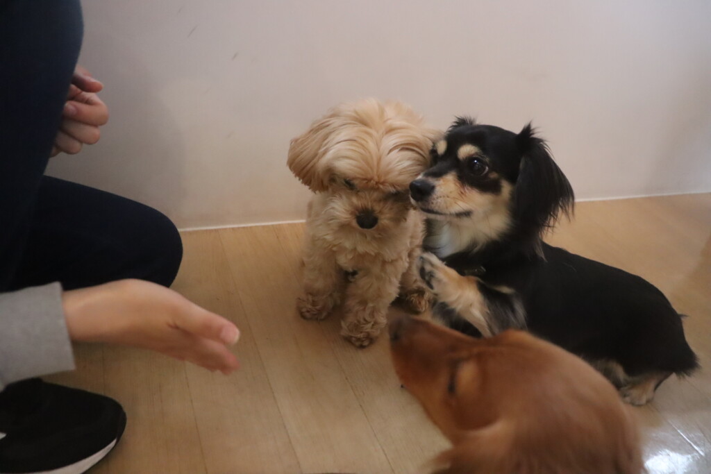 今日の保育園生は、パグのカールくん、ジャックラッセルテリアのソフィちゃん、ミニチュアシュナウザーのクオンくん、ミニチュアピンシャーのルアくん、マルチーズ×トイプードルのゆずちゃん・サンディちゃん・うるくん・陽向くん、チワワ×ミニチュアダックスフンドのこころちゃん、ミニチュアダックスフンドのみるもちゃん、フレンチブルドッグのハイちゃんです!