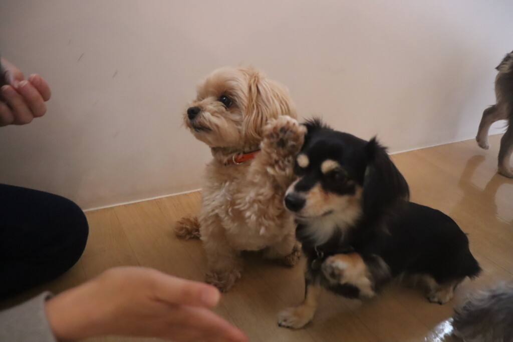 こころちゃんがトレーニングをしているときはみるもちゃんがマテ、みるもちゃんがトレーニングをしているときはこころちゃんがマテの練習もしています!