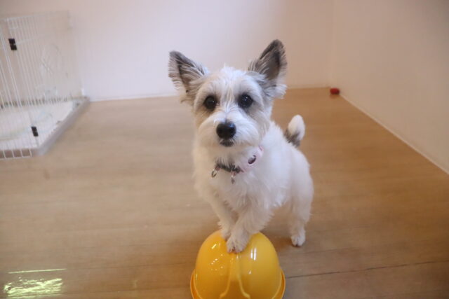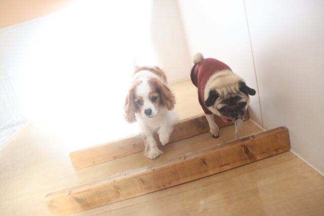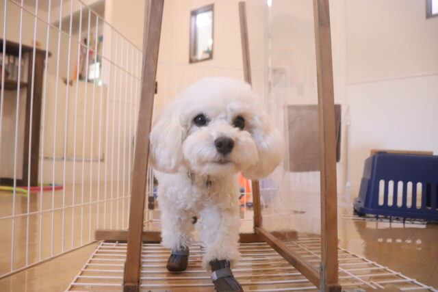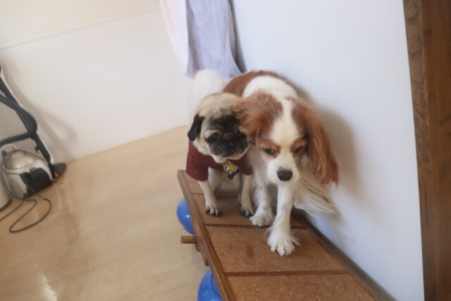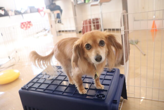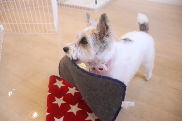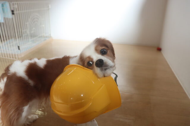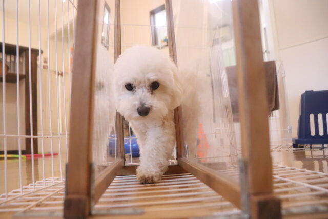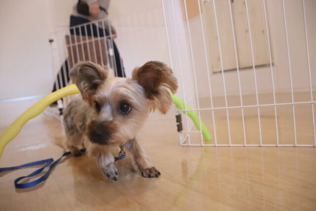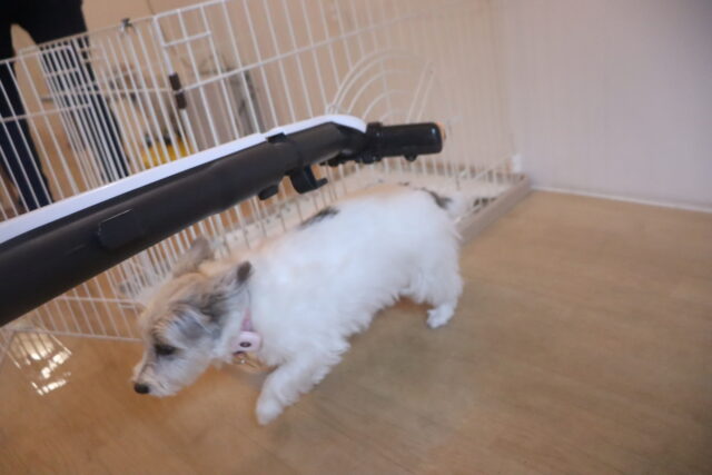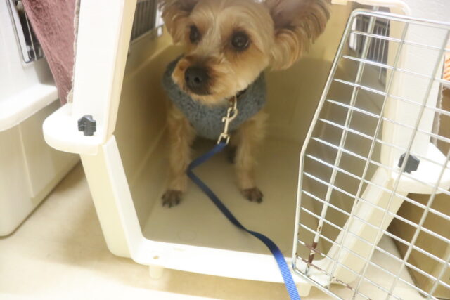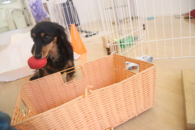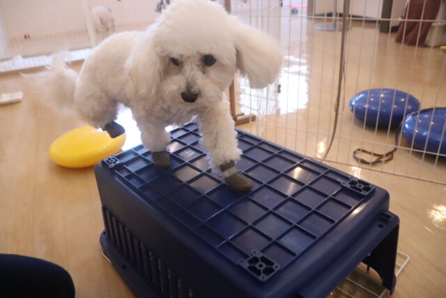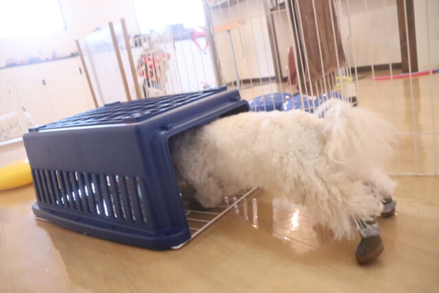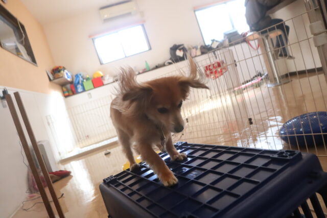 陽向くん、らいくんはクレートの底を使って物慣れ・足場慣れを行っています!