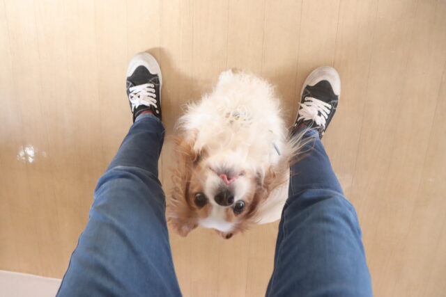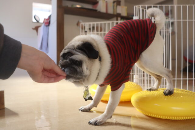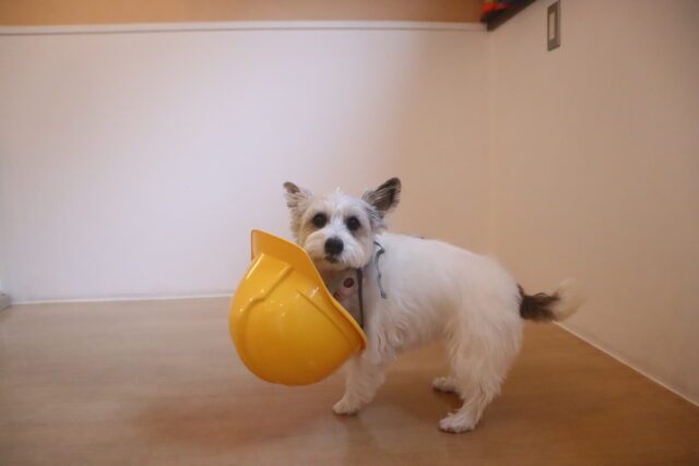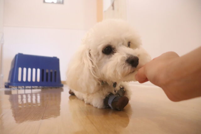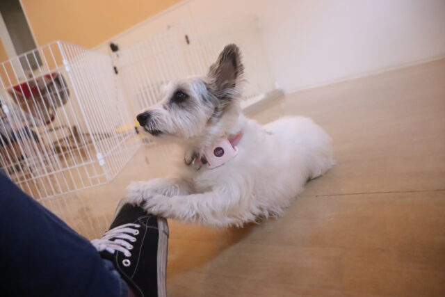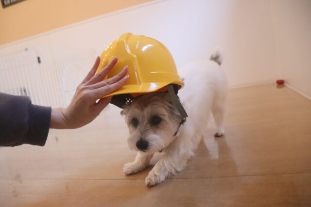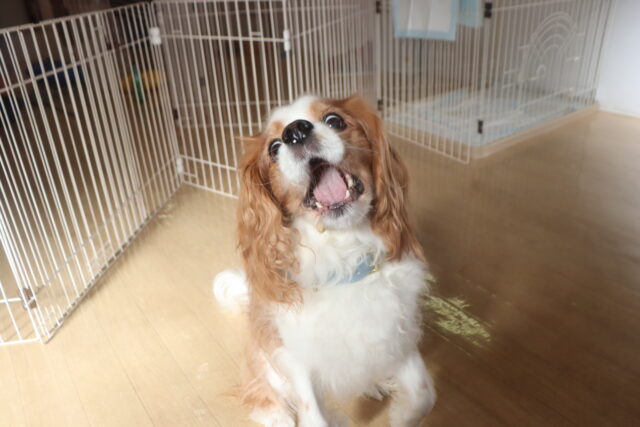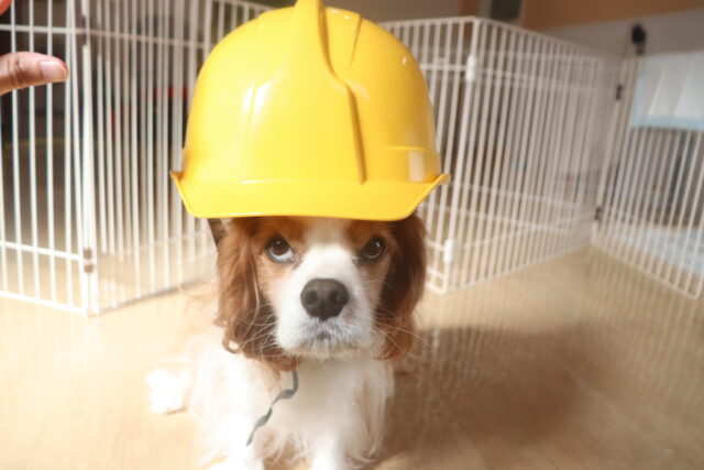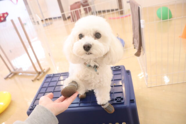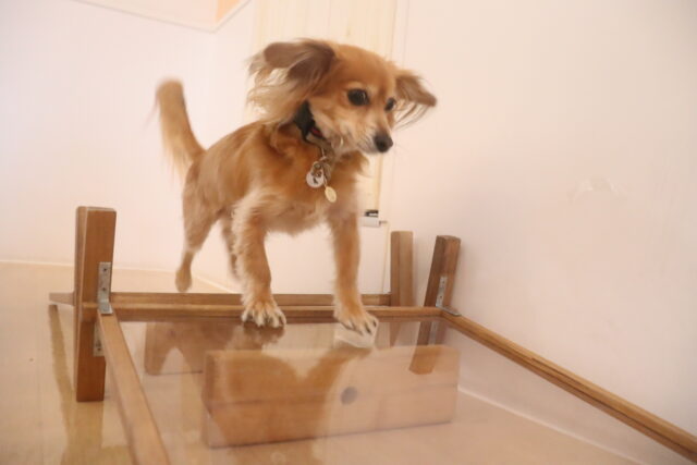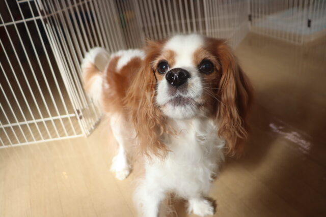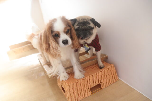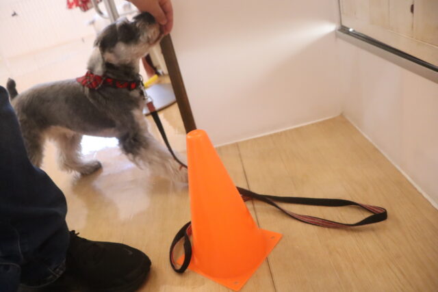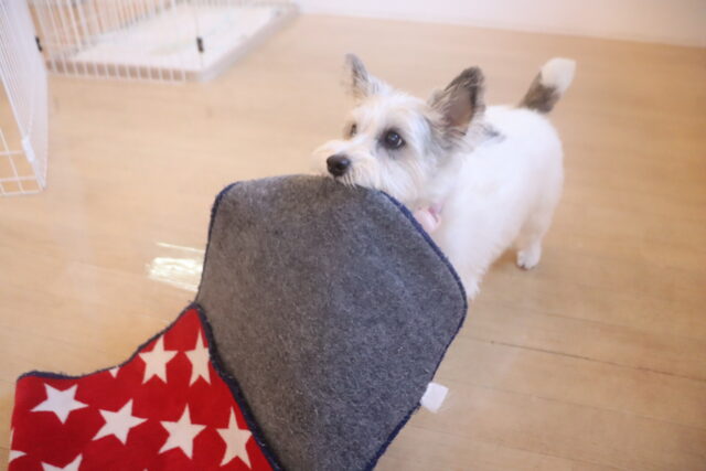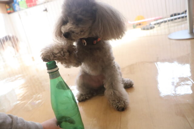 陽向くん、らいくんはクレートの底を使って物慣れ・足場慣れを行っています!