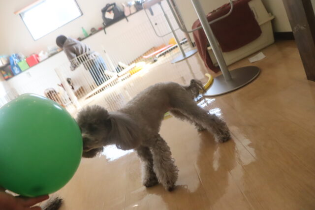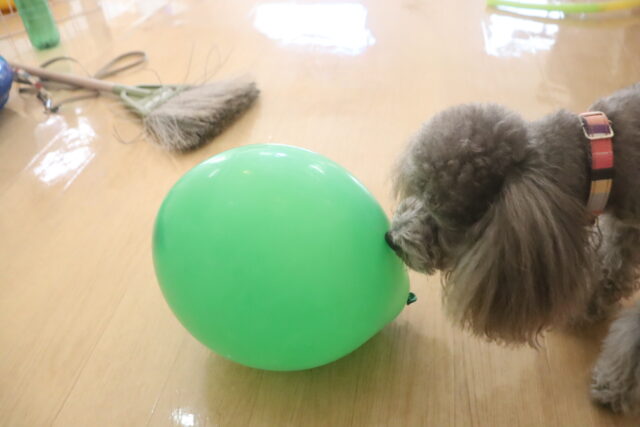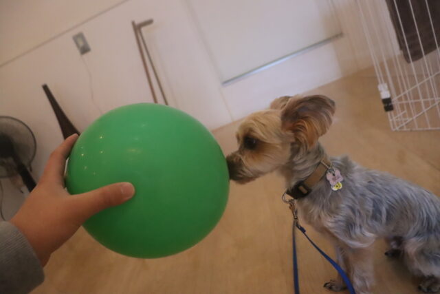 レイアちゃんは風船パスを練習中♬