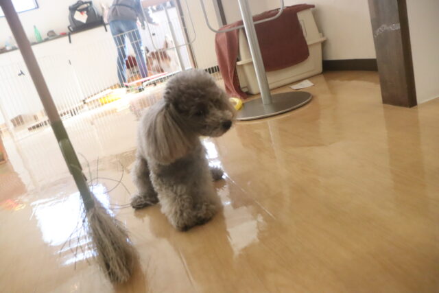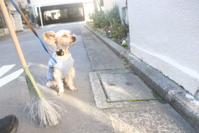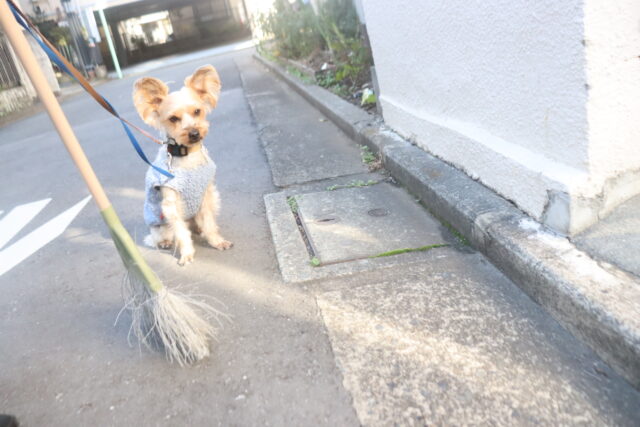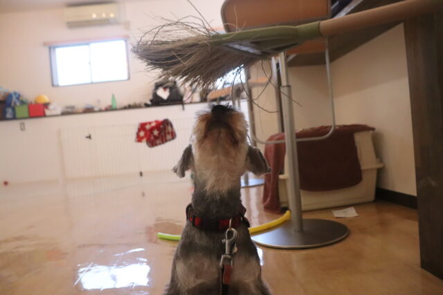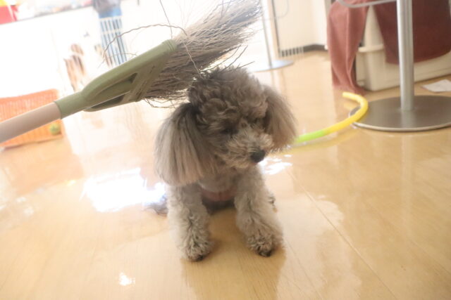 実際に掃く動作はあまり気にならないようで、(あっちの方が楽しそうだなー…)と上の空のレイアちゃん😅