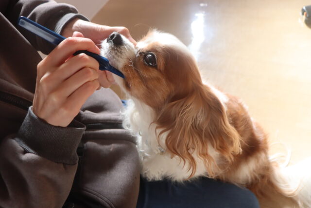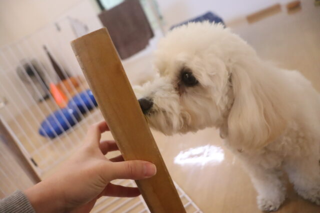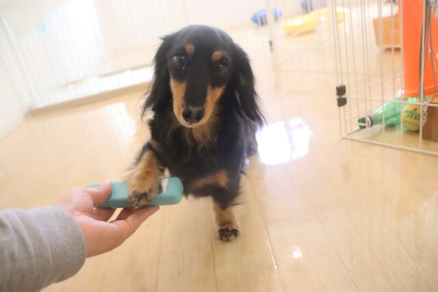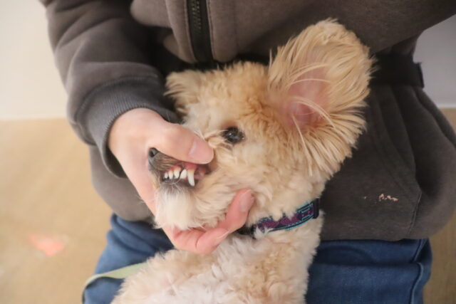 ハミガキ練習も始めました!まずは歯全体を触られても気にせずいられるよう慣れていこうね!