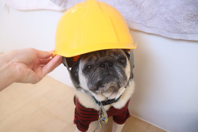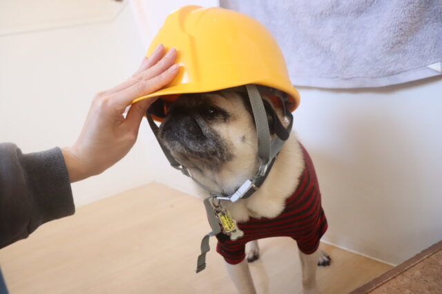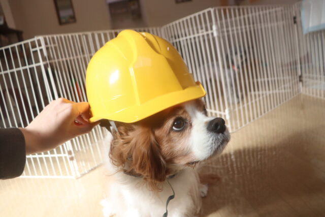 ソフィちゃんはヘルメットで物慣れをしたね!