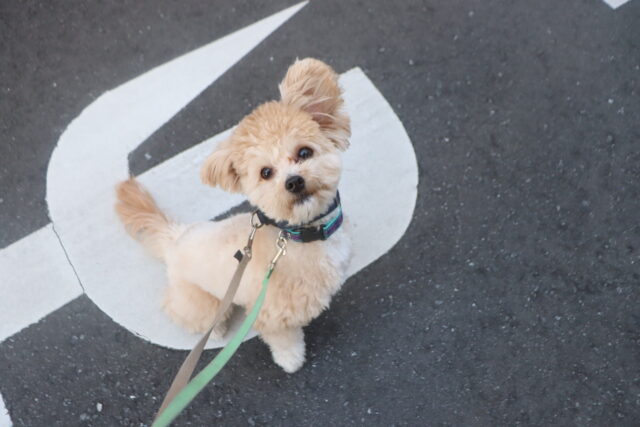 お外での警戒心が強いノアくんはお外で練習!