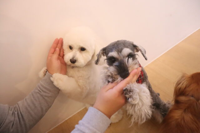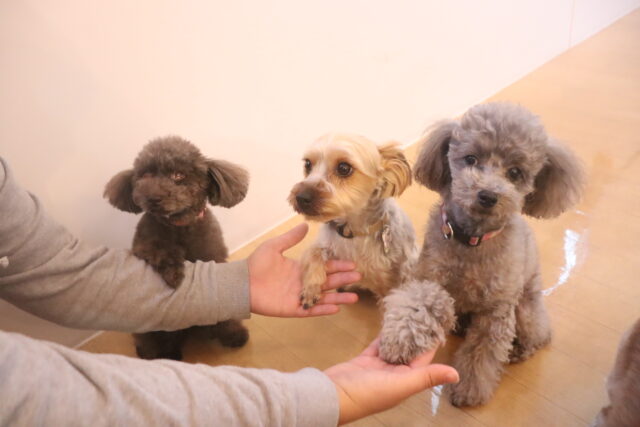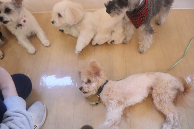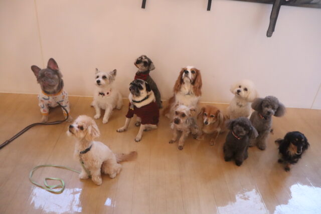 今日の保育園生は、ヨークシャーテリアのノアくん、トイプードルのココちゃん・アンジュちゃん、マルチーズ×トイプードルの陽向くん・アンディくん、ジャックラッセルテリアのソフィちゃん、ミニチュアシュナウザーのレイアちゃん、チワワ×ミニチュアダックスフンドのらいくん、キャバリアキングチャールズスパニエルの茶々丸くん、パグのカールくん、カニンヘンダックスフンドのここみちゃん、フレンチブルドッグのハイちゃんです!