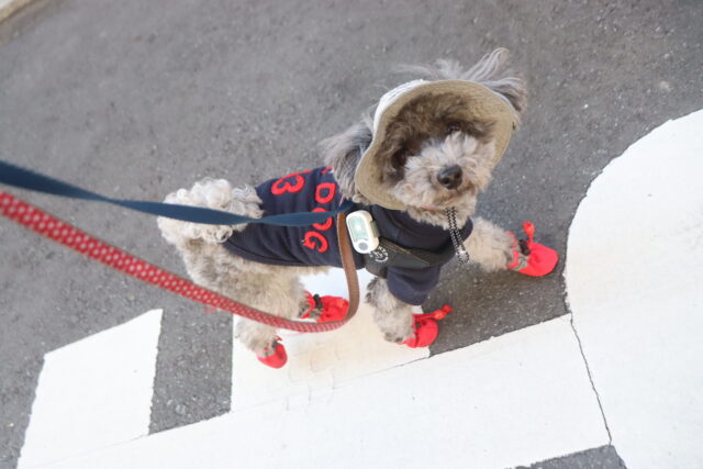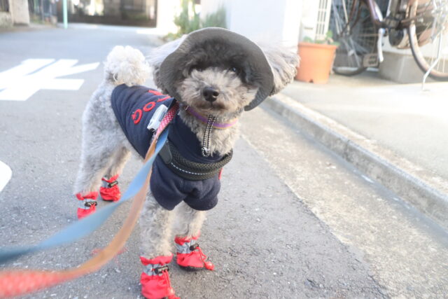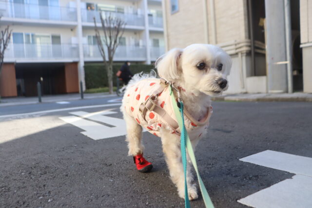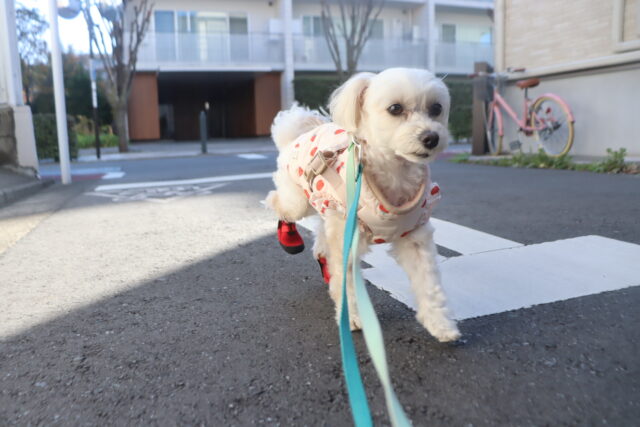 モモちゃん、きなこちゃん、アンジュちゃんは、靴や洋服などを身に着けてお散歩しました!少し気にする様子もありましたが、しっかりと歩くことが出来ましたよ♪