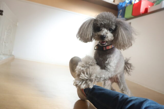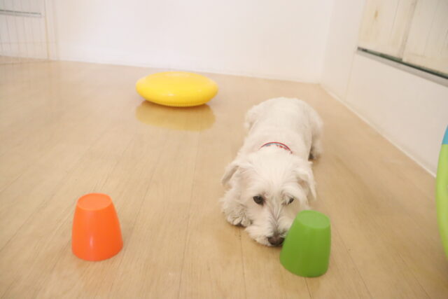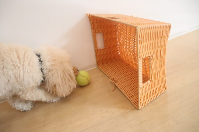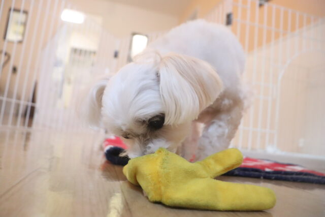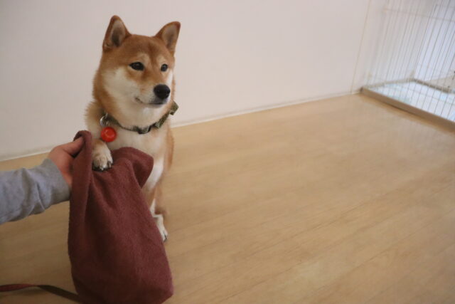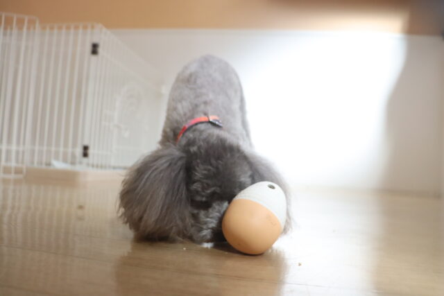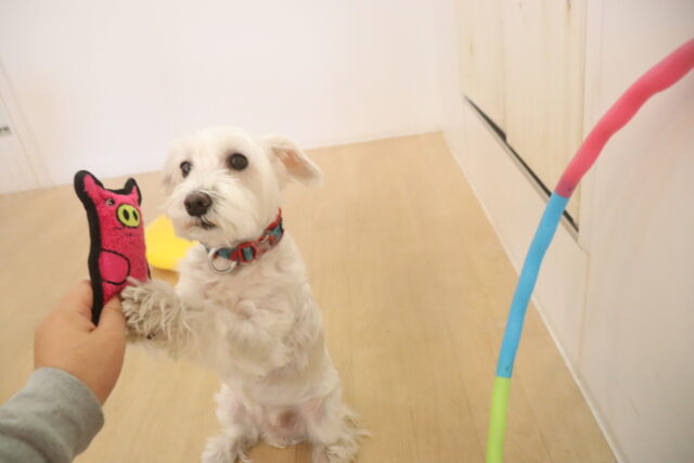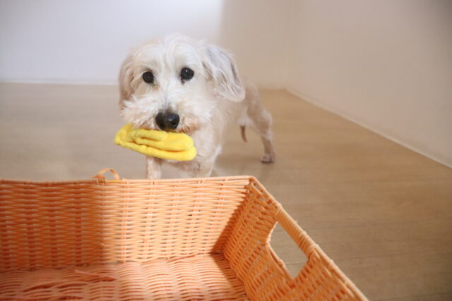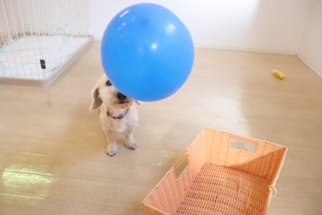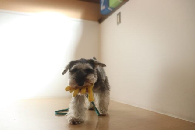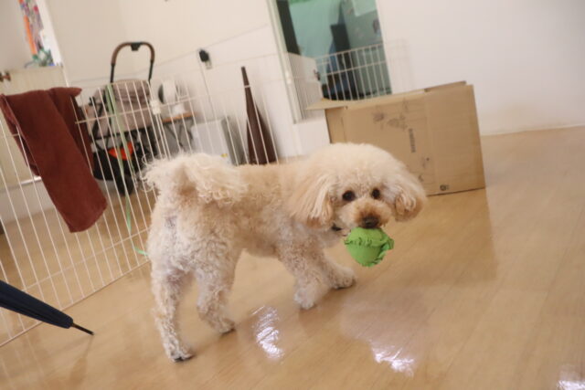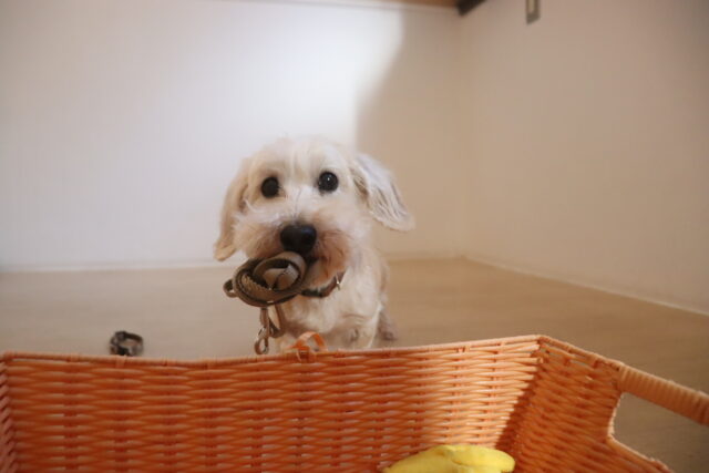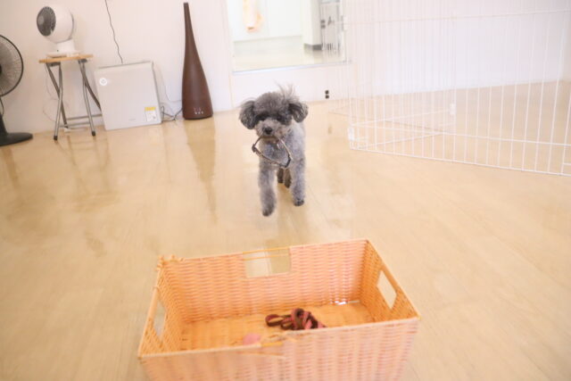 いつものおもちゃ以外にも、リードなど咥え慣れないものを使ってみましたがいつも通りに片付けることが出来ましたよ👏