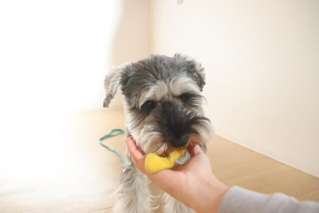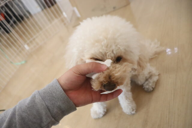 晴くんは目ヤニ取りの練習を行いました!苦手な顔周りのケア練習も頑張っていきます💪