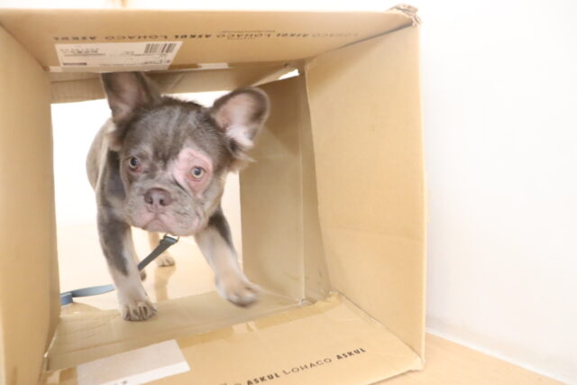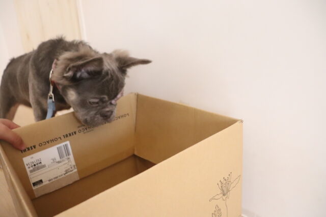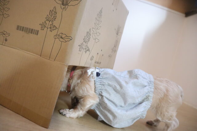 晴くん、ハイちゃん、ソランちゃん、小梅ちゃんはダンボールを使って物慣れを行いました♪それぞれの難易度に合わせて練習しましたが、全頭楽しそうに最後まで取り組んでくれましたよ💮