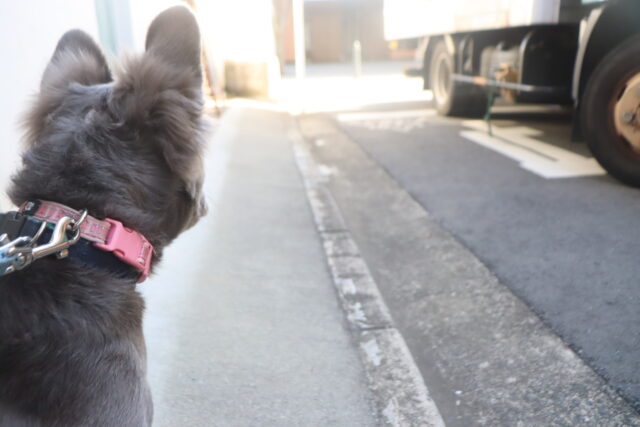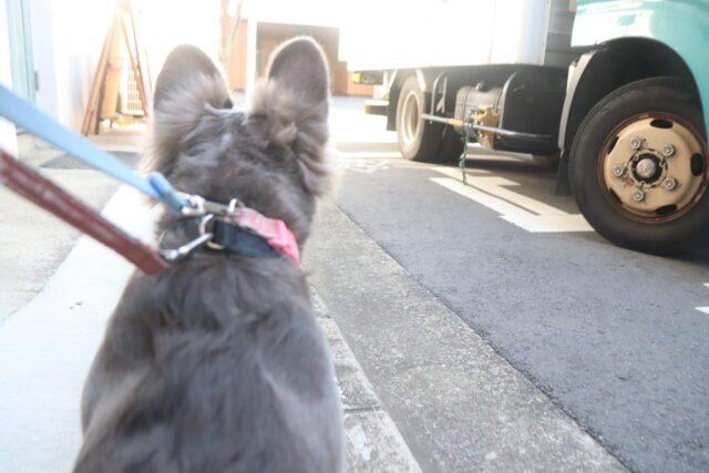 トラックが近くに来ると目を離さず集中するハイちゃん👀しばらく観察すると満足したようで、お外でのトレーニングも集中して取り組んでくれましたよ🌟