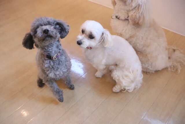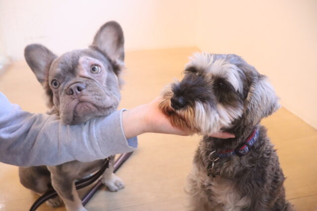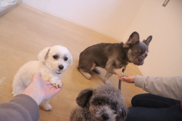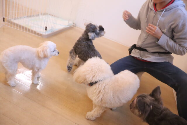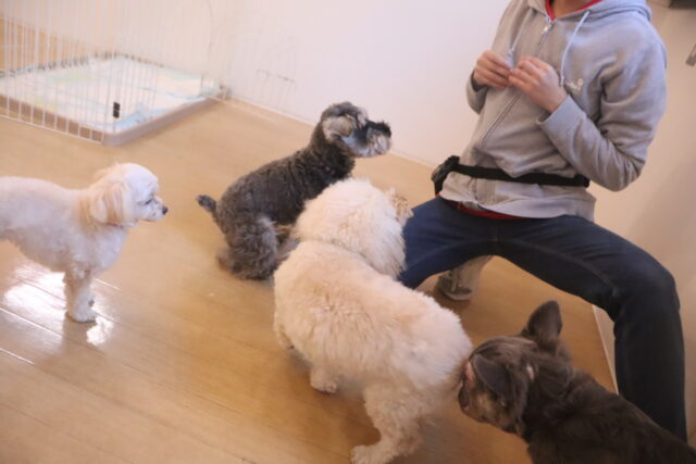 今日の保育園生は、ワイヤーへアードミニチュアダックスフンドの小梅ちゃん、ミニチュアシュナウザーのレイアちゃんとソランちゃん、トイプードルのモモちゃんとアンジュちゃん、フレンチブルドッグのハイちゃん、柴犬のポチちゃん、マルチーズ×トイプードルのきなこちゃんと晴くんです!