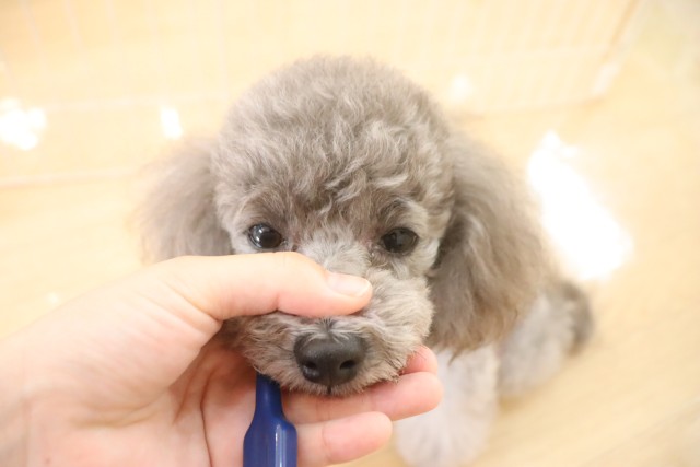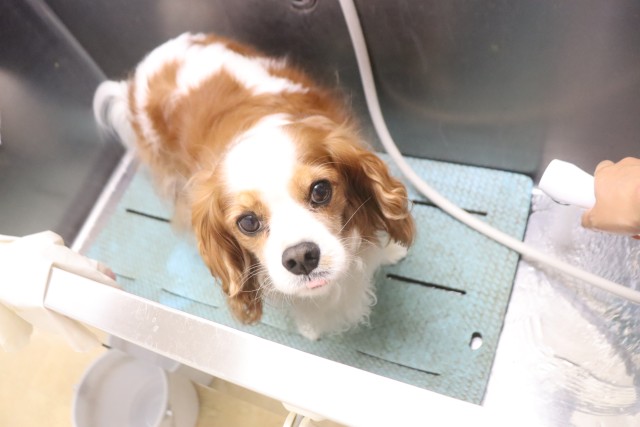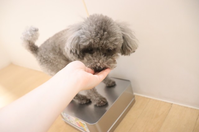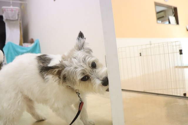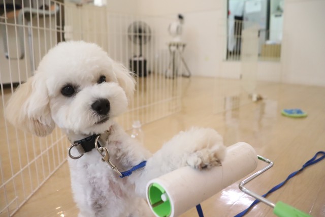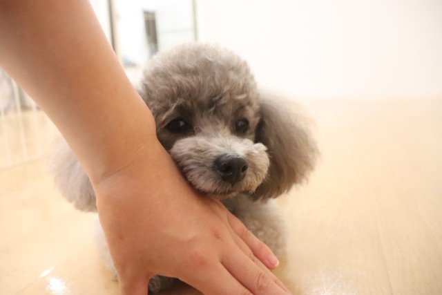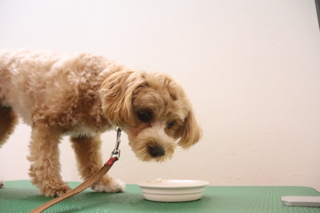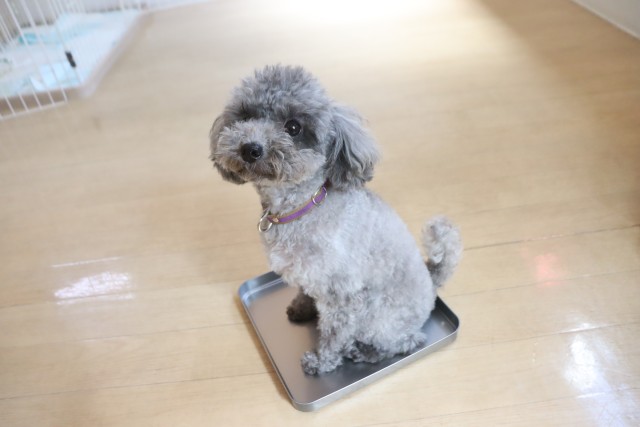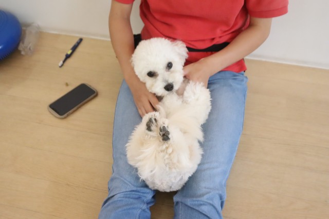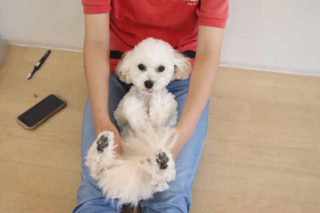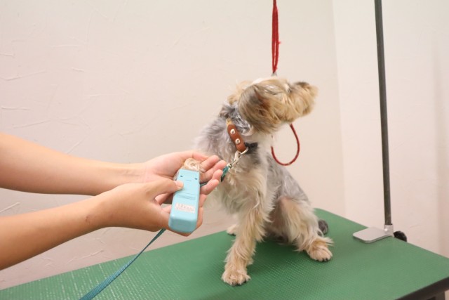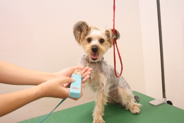 トリミング台慣れでは始めはフリーズをしていましたが、後半はオヤツをモグモグと食べることが出来ていましたよ♪