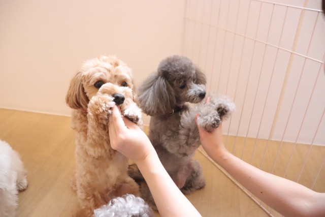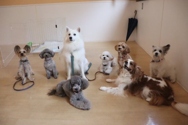 今日の保育園生は、ジャックラッセルテリアのソフィちゃん、スピッツのパブロンくん、トイプードルのモモちゃん、アンジュちゃん、マルチーズ×トイプードルのアリアちゃん、陽向くん、キャバリアキングチャールズスパニエルの茶々丸くん、ヨークシャーテリアのノアくんです!