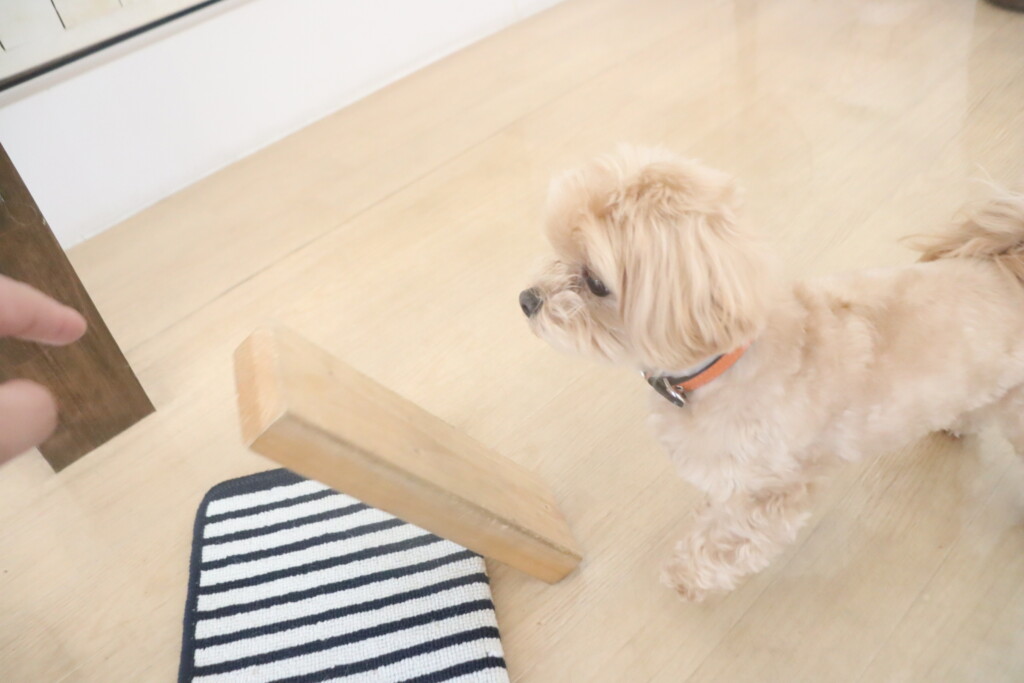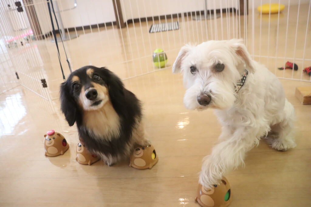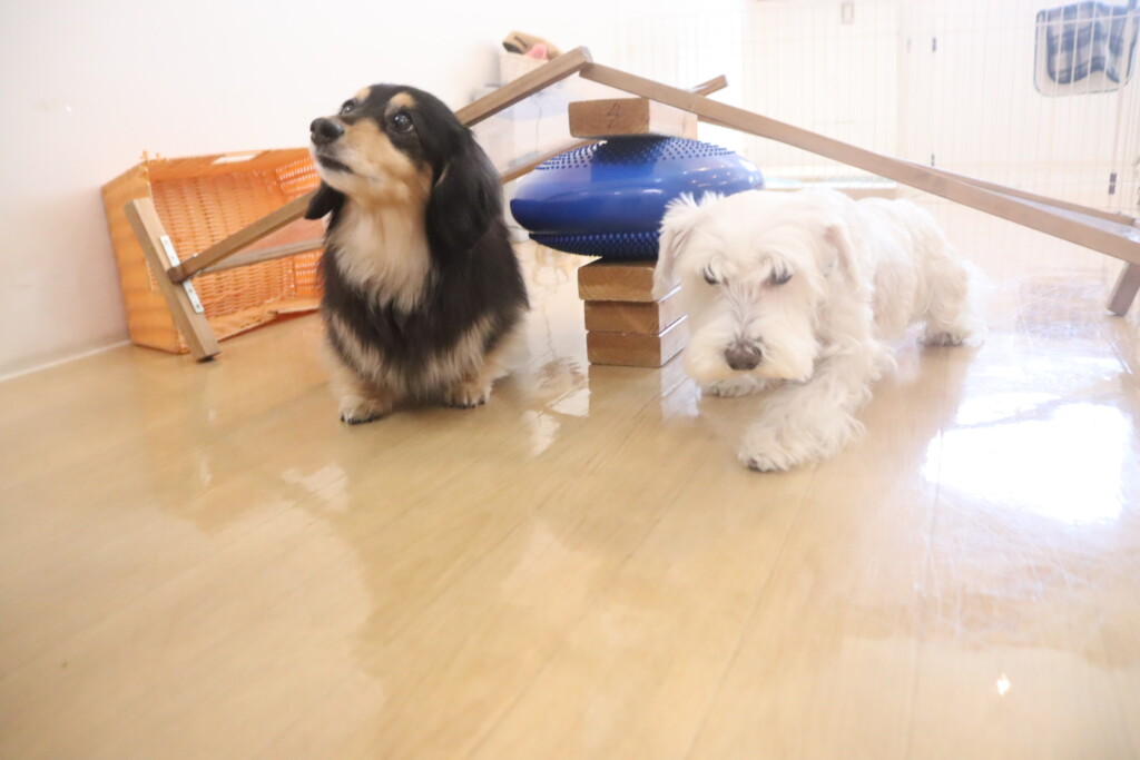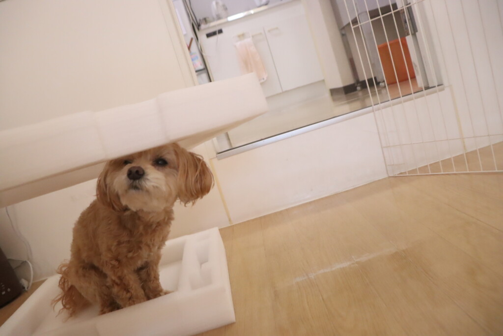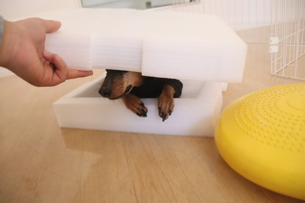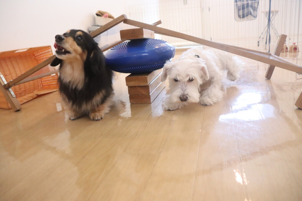 うるくん、ルアくん、サンディちゃん、ハイちゃんは発泡スチロールで物慣れ・足場慣れを行いました!