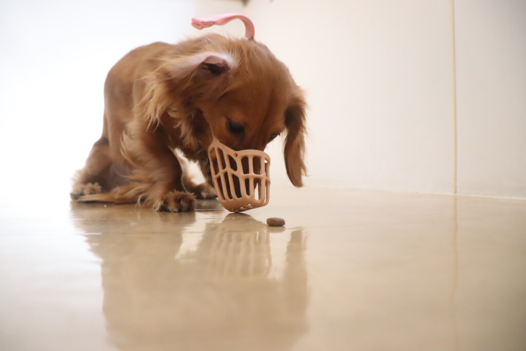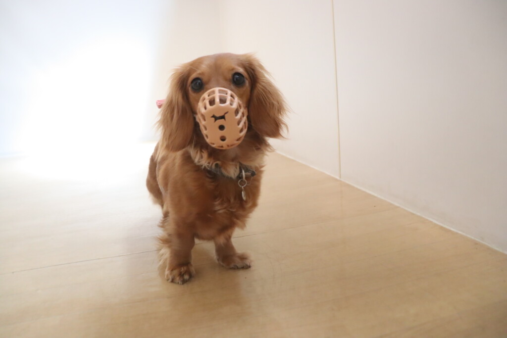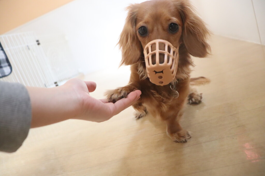 口輪を装着してみるとフリーズした後外そうともがく仕草が見られましたが…