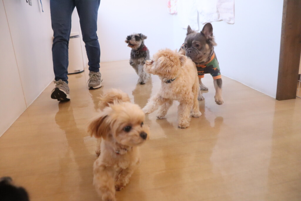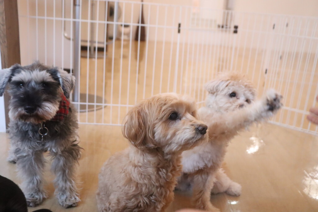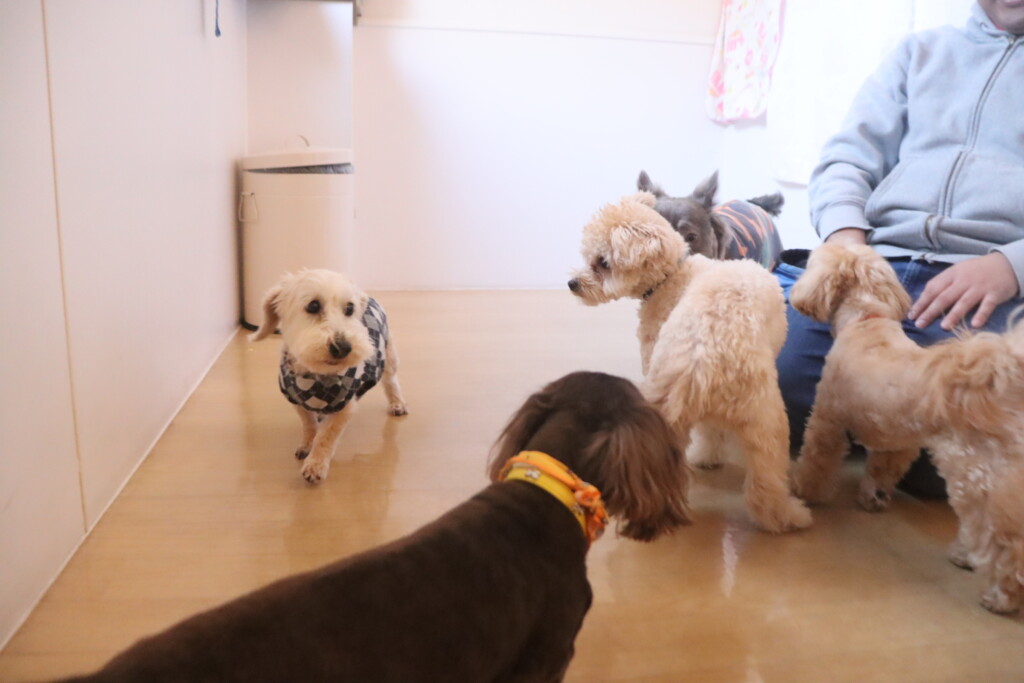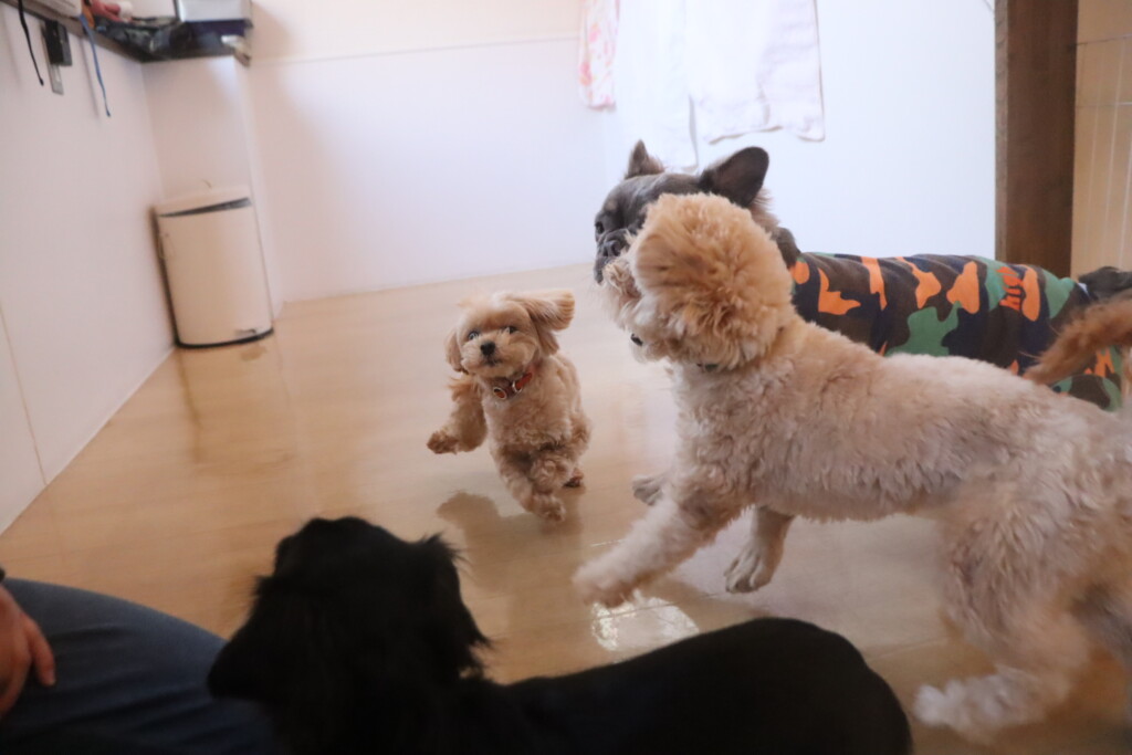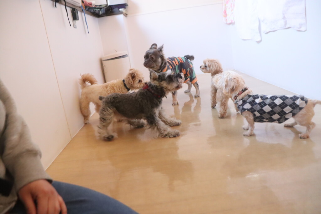 今日の保育園生は、ミニチュアダックスフンドのミーシャちゃん・みるもちゃん・すいれんちゃん、マルチーズ×トイプードルのうるくん・アンディくん・サンディちゃん・ゆずちゃん、チワワ×ミニチュアダックスフンドのこころちゃん、ミニチュアピンシャーのルアくん、ミニチュアシュナウザーのレイアちゃん・ソランちゃん、ワイヤーヘアードミニチュアダックスフンドの小梅ちゃん、フレンチブルドッグのハイちゃんです!