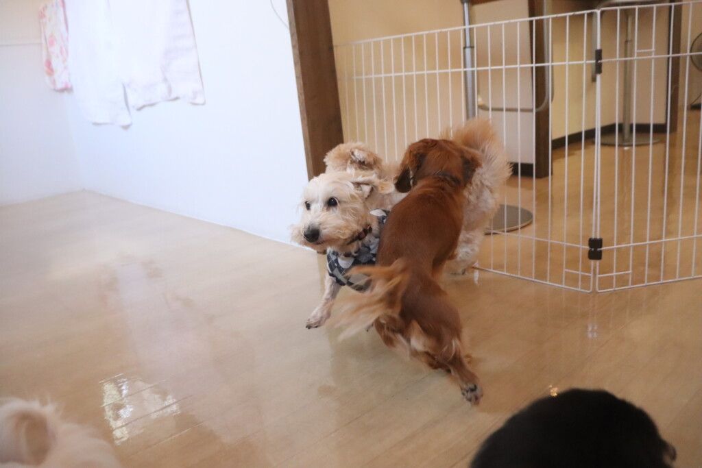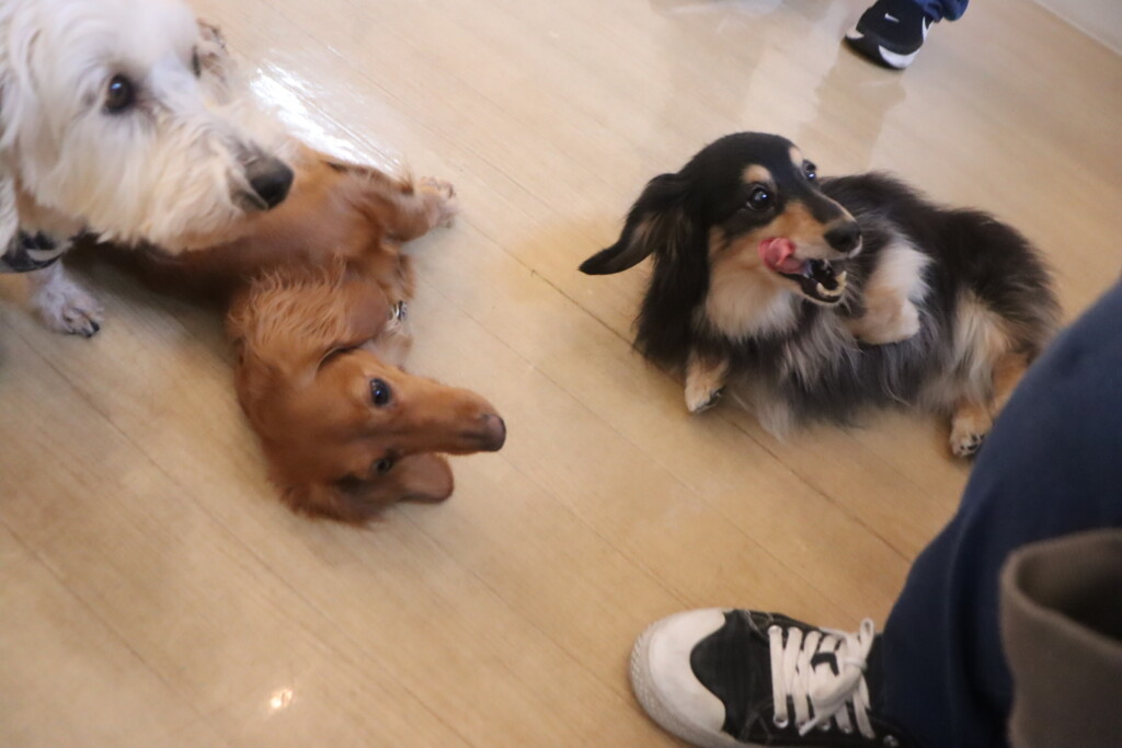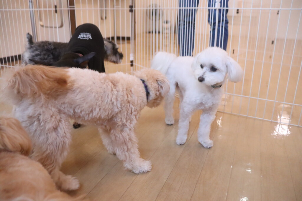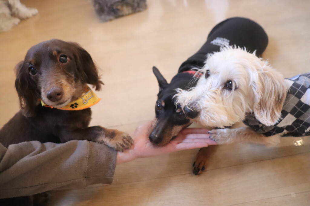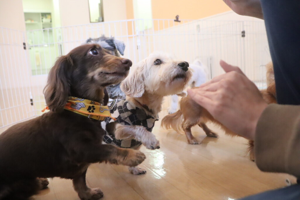 今日の保育園生は、ミニチュアダックスフンドのミーシャちゃん・みるもちゃん・すいれんちゃん、マルチーズ×トイプードルのうるくん・アンディくん・サンディちゃん・ゆずちゃん、チワワ×ミニチュアダックスフンドのこころちゃん、ミニチュアピンシャーのルアくん、ミニチュアシュナウザーのレイアちゃん・ソランちゃん、ワイヤーヘアードミニチュアダックスフンドの小梅ちゃん、フレンチブルドッグのハイちゃんです!