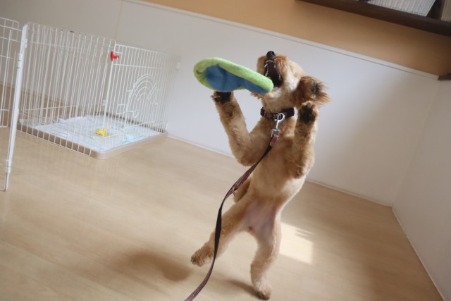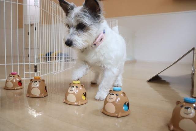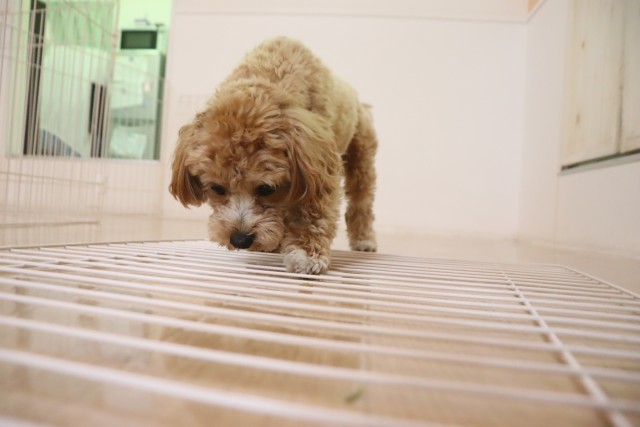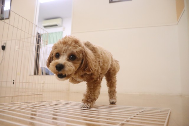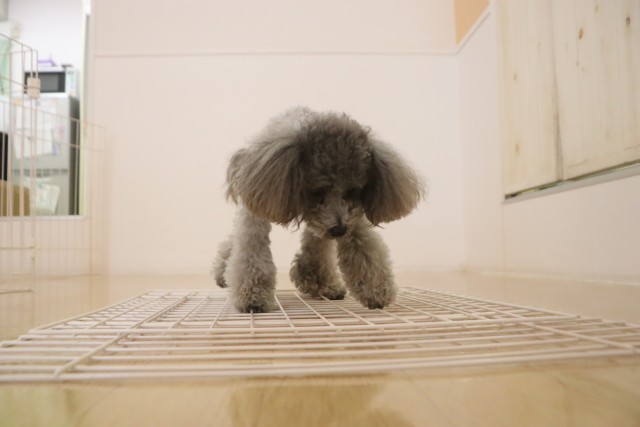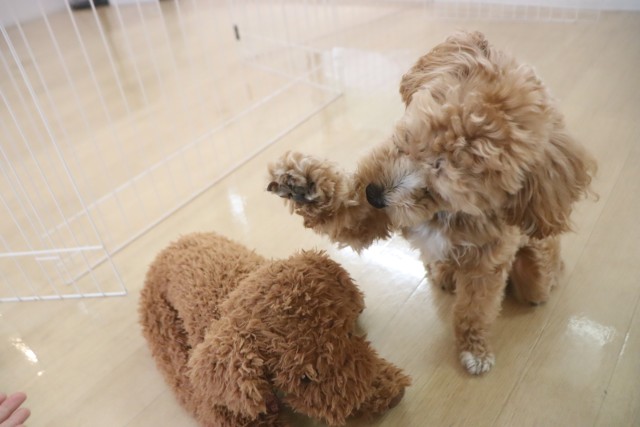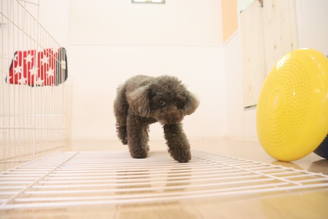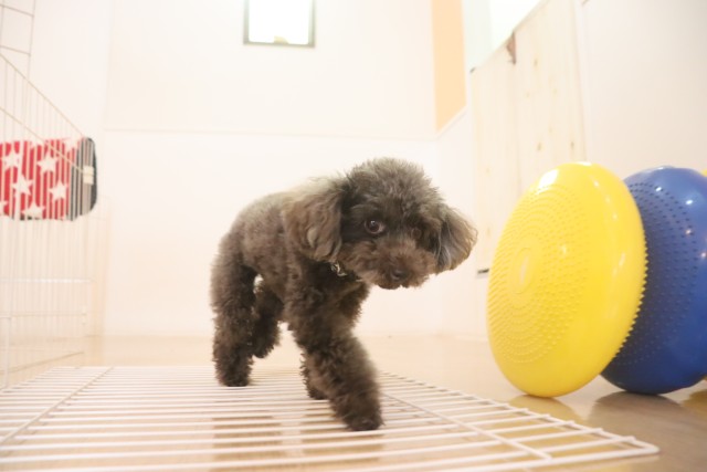 アンジュちゃん・ポチちゃん・ココちゃん・アリアちゃんはサークル、エマちゃん・らいくんはシーソーで足場慣れをしました!