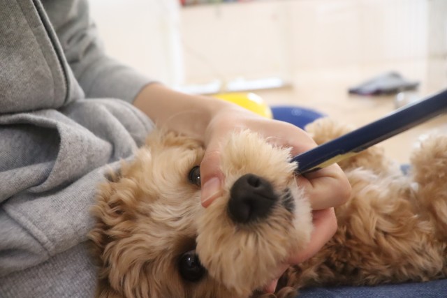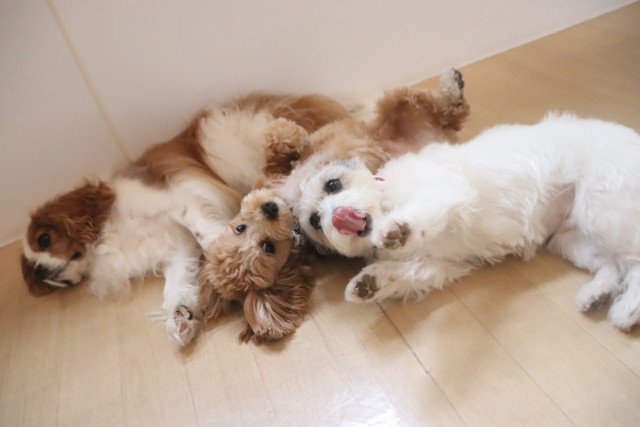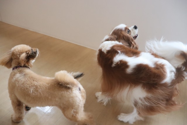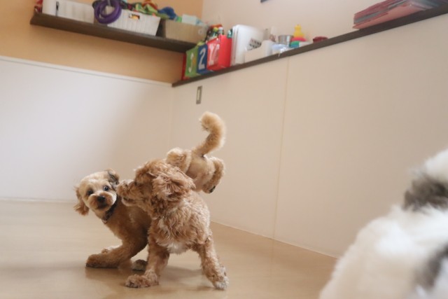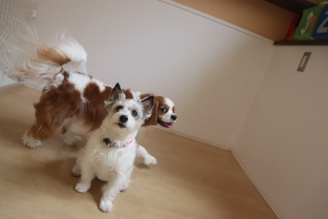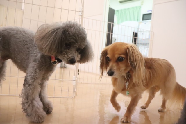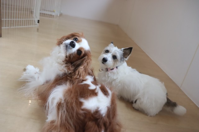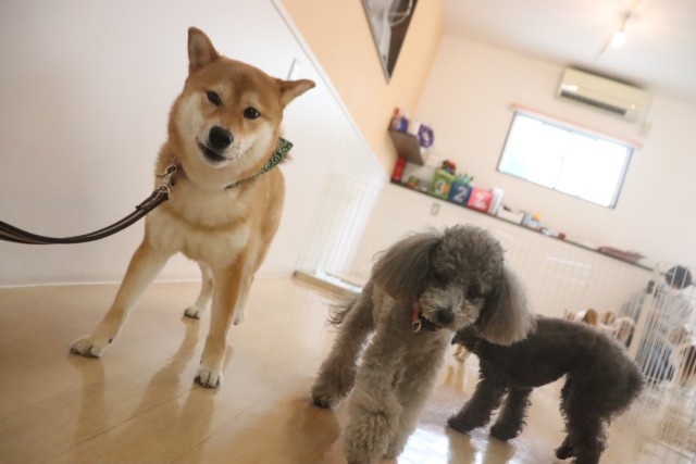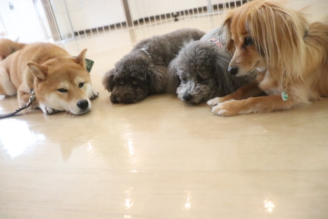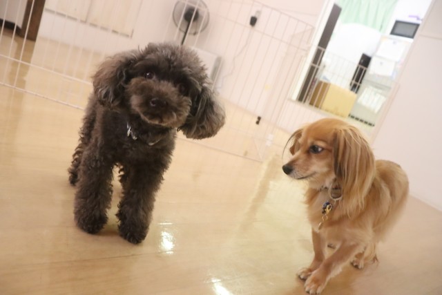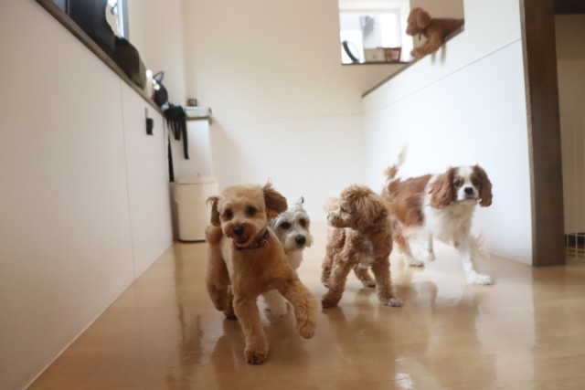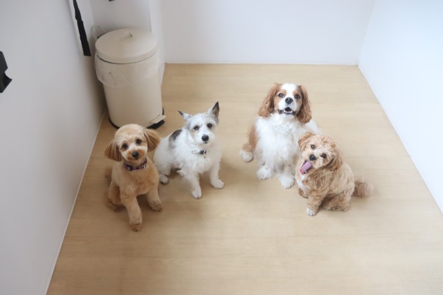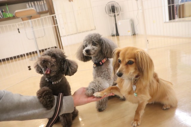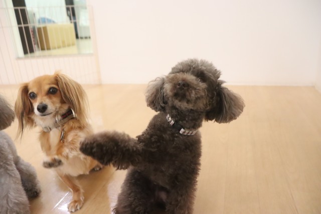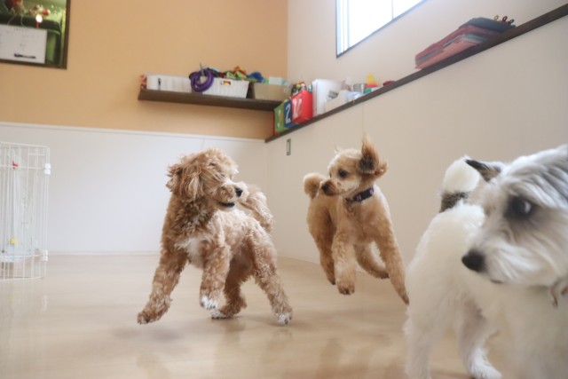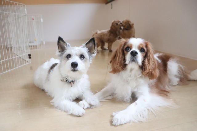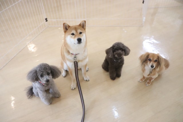 今日の保育園生は、キャバリアキングチャールズスパニエルの茶々丸くん、ポメラニアン×トイプードルのエマちゃん、トイプードルのアンジュちゃん・ココちゃん、柴犬のポチちゃん、マルチーズ×トイプードルのアリアちゃん、チワワ×ミニチュアダックスフンドのらいくん、ジャックラッセルテリアのソフィちゃんです!