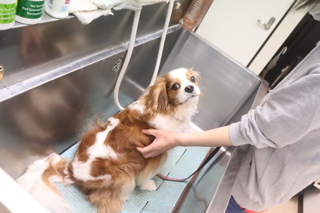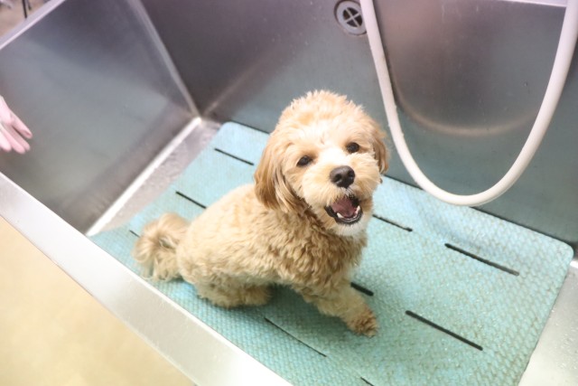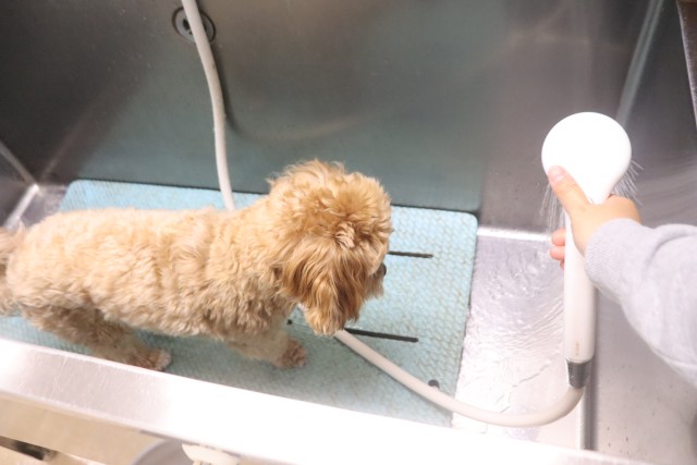 ポチちゃんはシャンプーのシンクに慣れる練習をしたね!