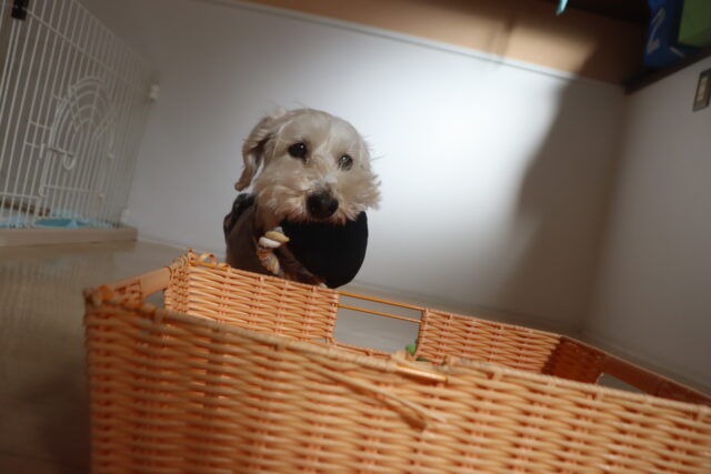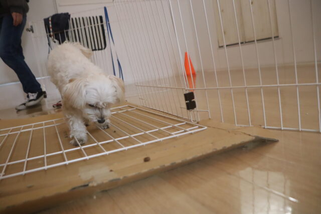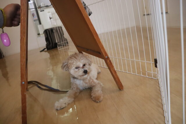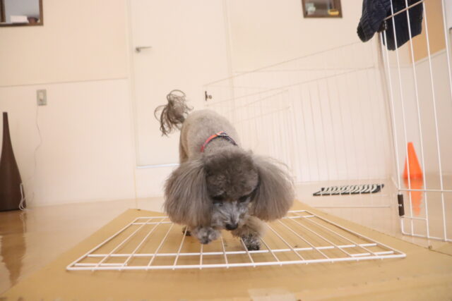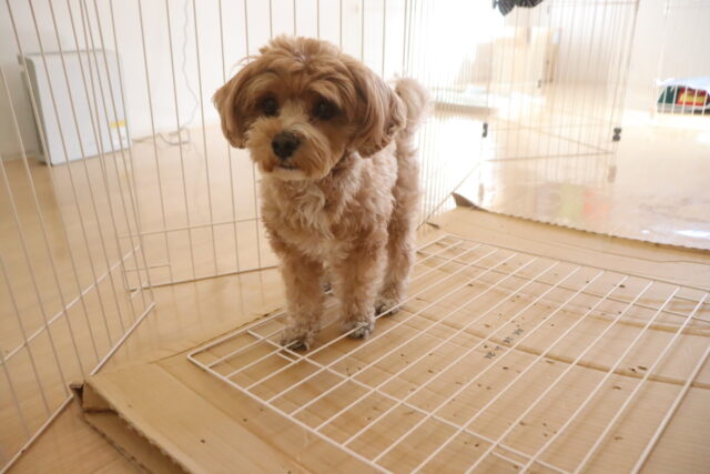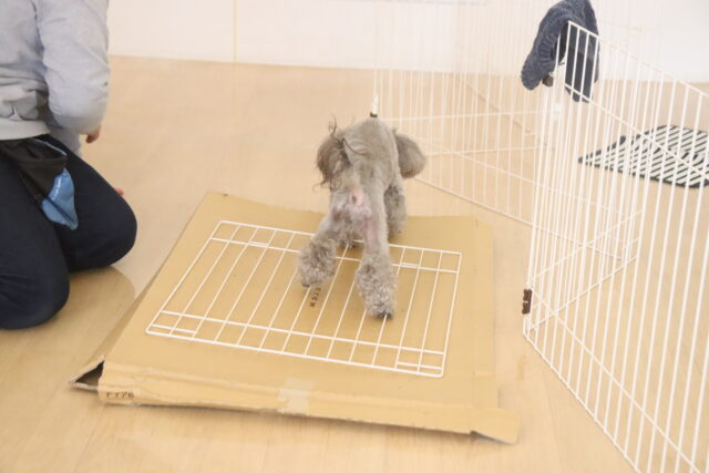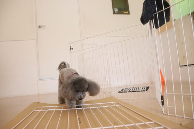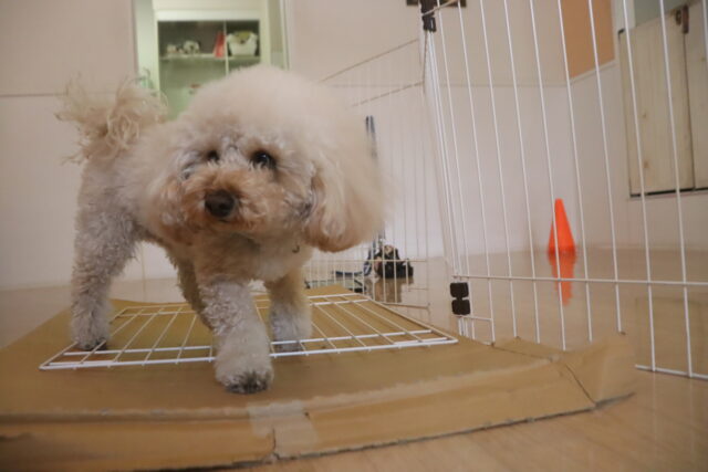 苦手なクレートの扉に今日も少し戸惑っていましたが、4つ足を乗せることが出来たね🎵
