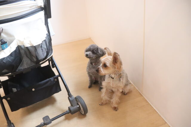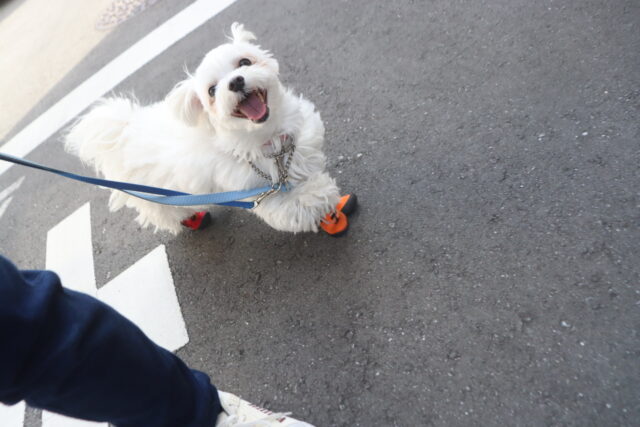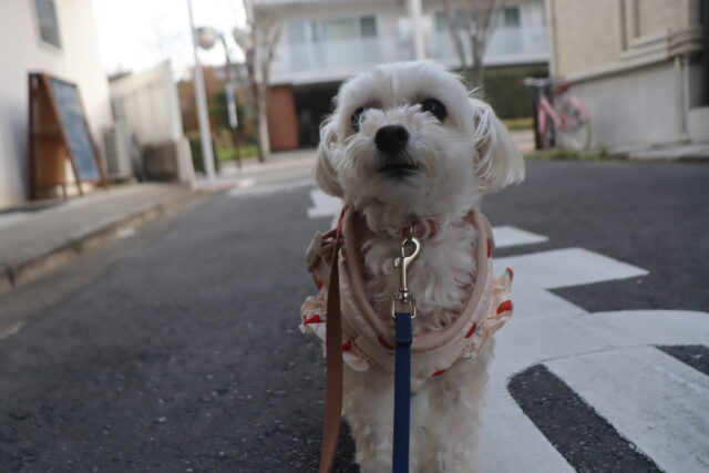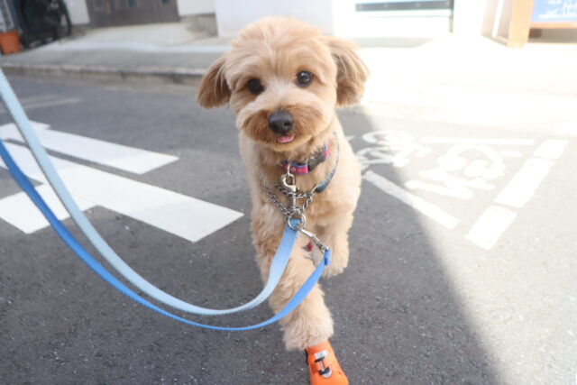 アンディくん・レイアちゃん・晴くん・エマちゃん・ことぶきくん・アリアちゃん・アンジュちゃん・小梅ちゃん・ハイちゃんはお外でお散歩練習!