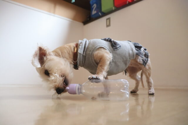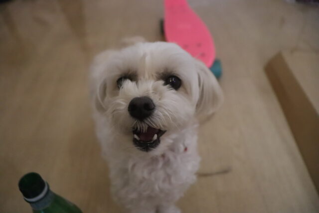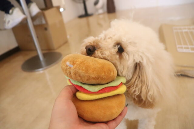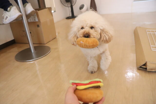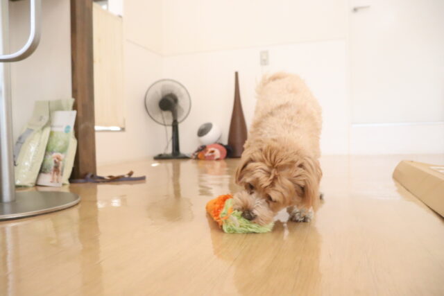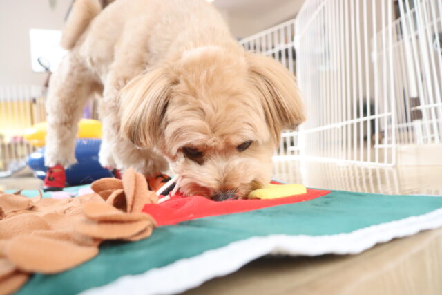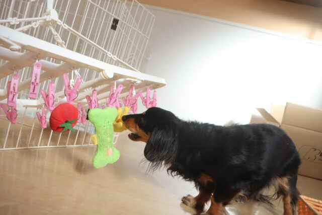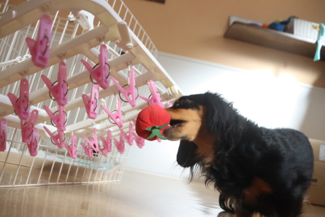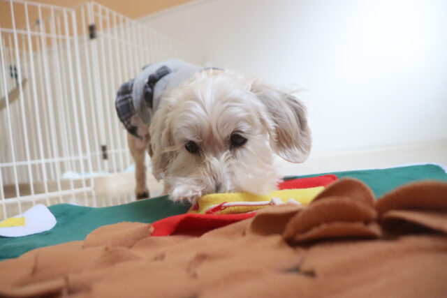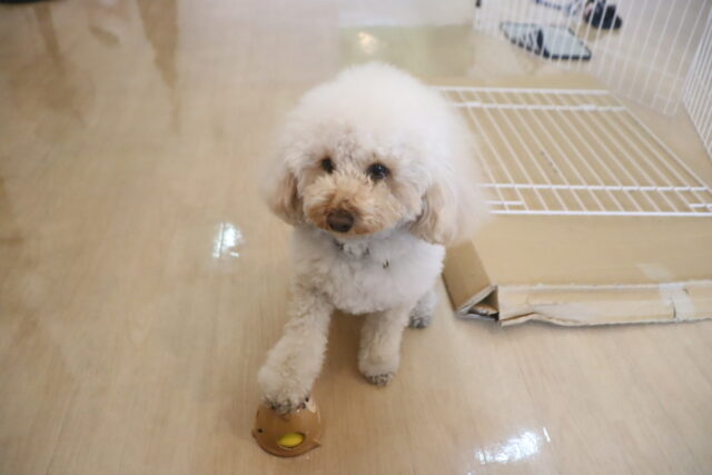 知育玩具も楽しんだね!色々な角度からフードを食べようと試行錯誤していましたよ✨