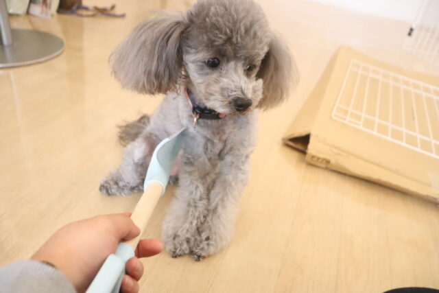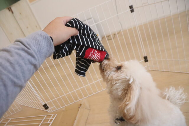 においを嗅いで確認すると、知っているスタッフだとわかり安心した様子🎵
