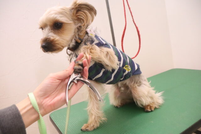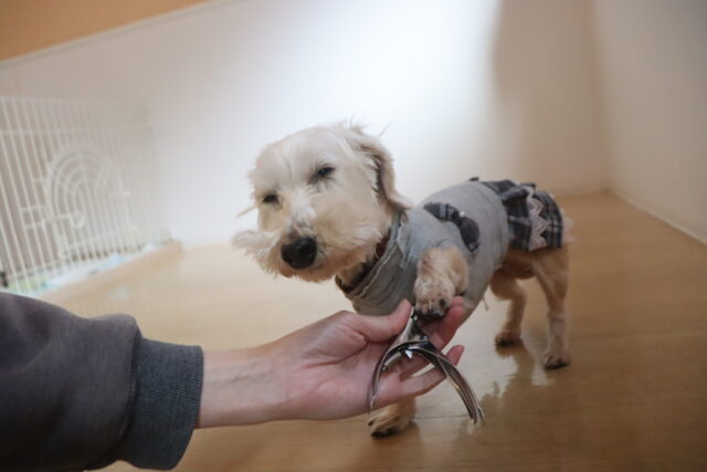 台の上で苦手な爪切りを当てると急にテンションが下がってしまうノアくん💦