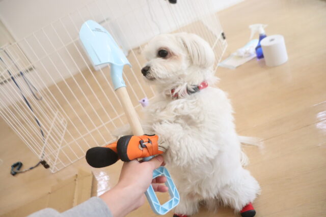 アリアちゃんはオモチャのスコップを使って物慣れをしました!