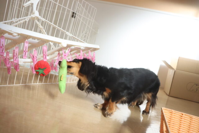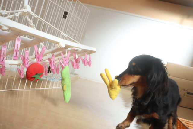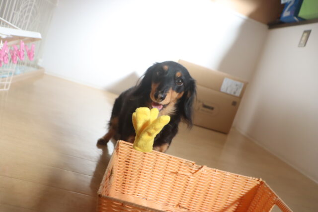今日は洗濯されたオモチャを取りこんでもらいました✨
