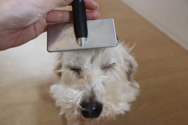 爪切りとブラッシング、どちらも目を細めて現実逃避気味になっていました💦