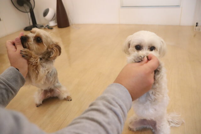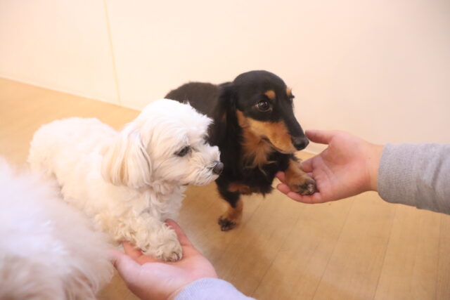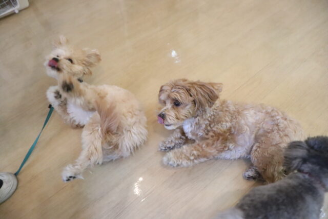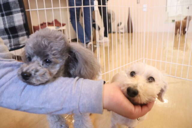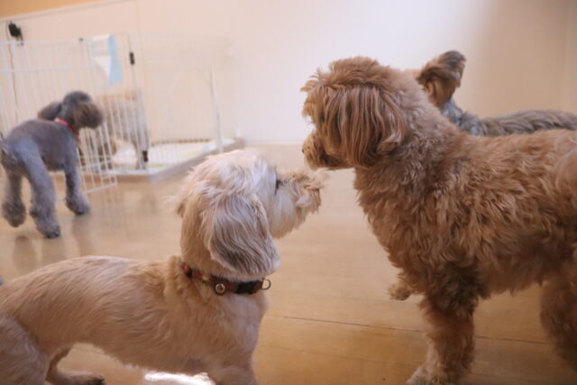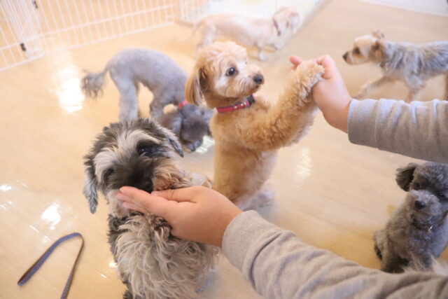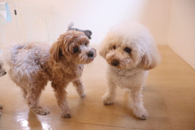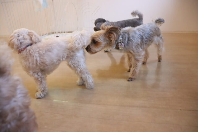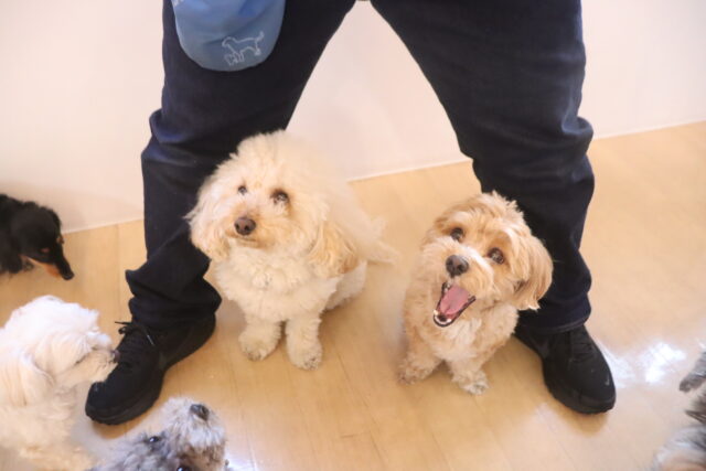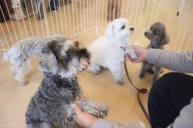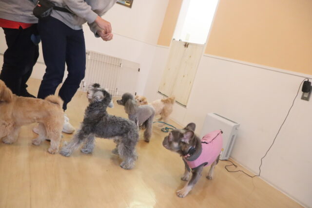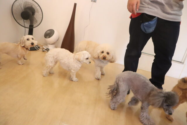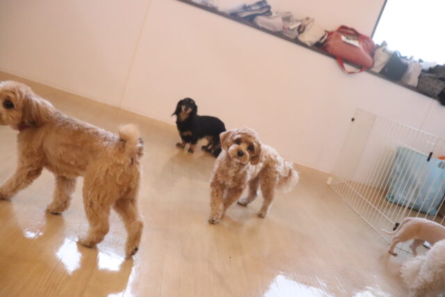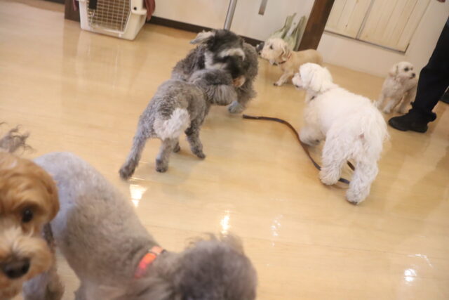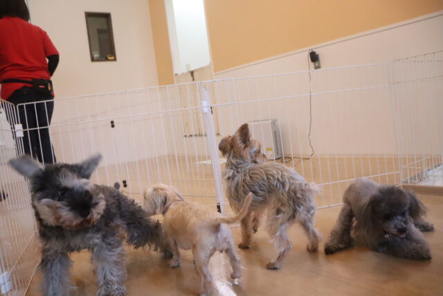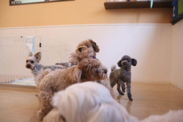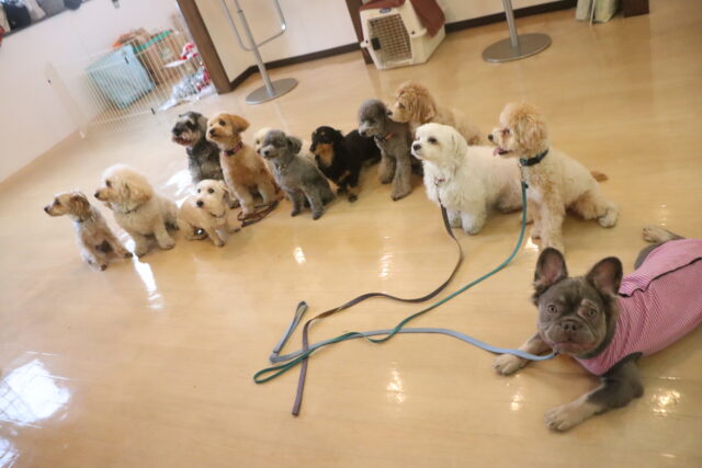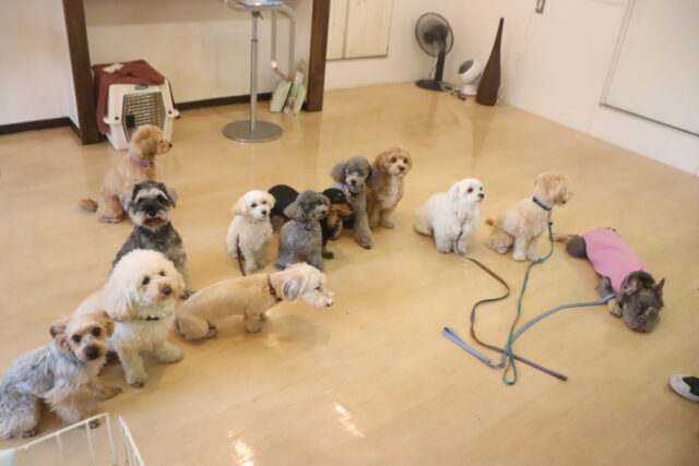 今日の保育園生は、ワイヤーヘアードミニチュアダックスフンドの小梅ちゃん、トイプードルのアンジュちゃん・モモちゃん、カニンヘンダックスフンドのここみちゃん、ミニチュアシュナウザーのレイアちゃん、マルチーズ×トイプードルの晴くん・アリアちゃん・アンディくん、ポメラニアン×トイプードルのエマちゃん、マルチーズのことぶきくん、ヨークシャーテリアのノアくん、フレンチブルドッグのハイちゃんです!