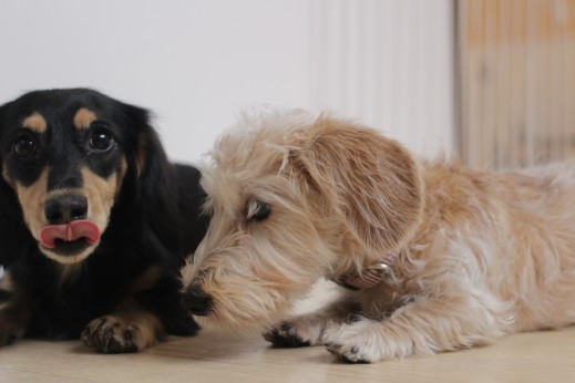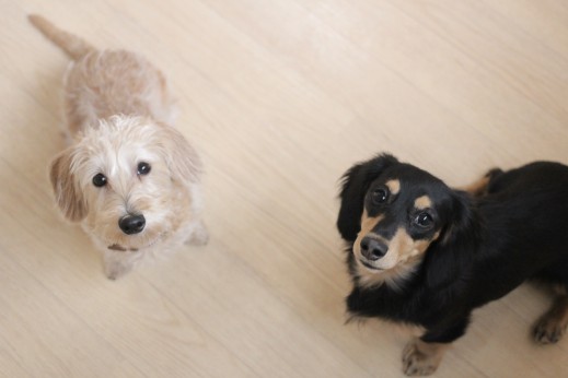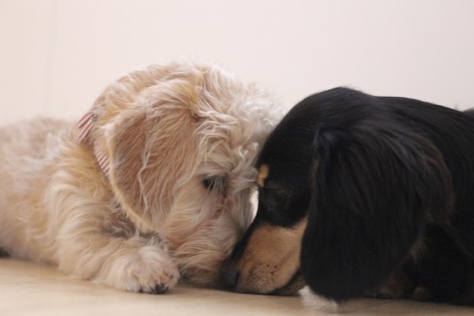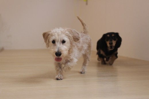 今日の保育園生はワイヤーヘアードミニチュアダックスフンドの小梅ちゃんとミニチュアダックスフンドのすいれんちゃんです!
