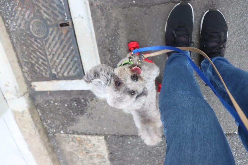 モモちゃんは今日も靴を履いてお散歩へ行きました!
