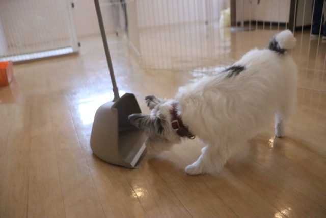 しばらくすると、ほうきの周りを楽しそうに回ってくれています!